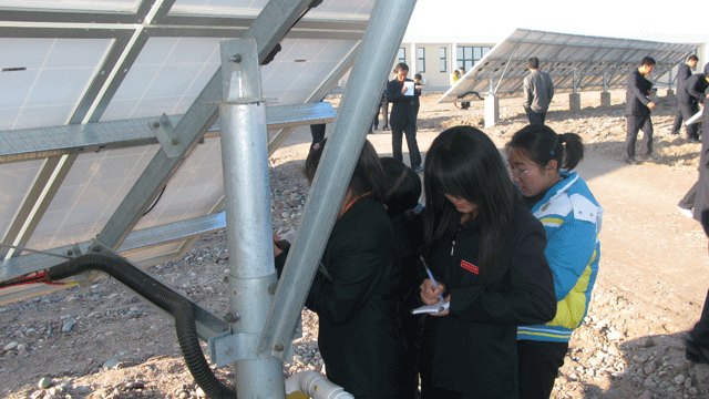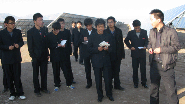 11月12日上午,能源工程系組織光伏發(fā)電技術(shù)及應(yīng)用和太陽能光熱技術(shù)應(yīng)用兩個專業(yè)共116名學(xué)生和全系教師前往位于武威豐樂鎮(zhèn)拱星墩灘的金太陽新能源高新技術(shù)集中區(qū)進行觀摩學(xué)習(xí),以實踐我系在“國家骨干高職院校建設(shè)”中重點專業(yè)及專業(yè)群的“兩進兩出、 分段遞進”的人才培養(yǎng)模式。