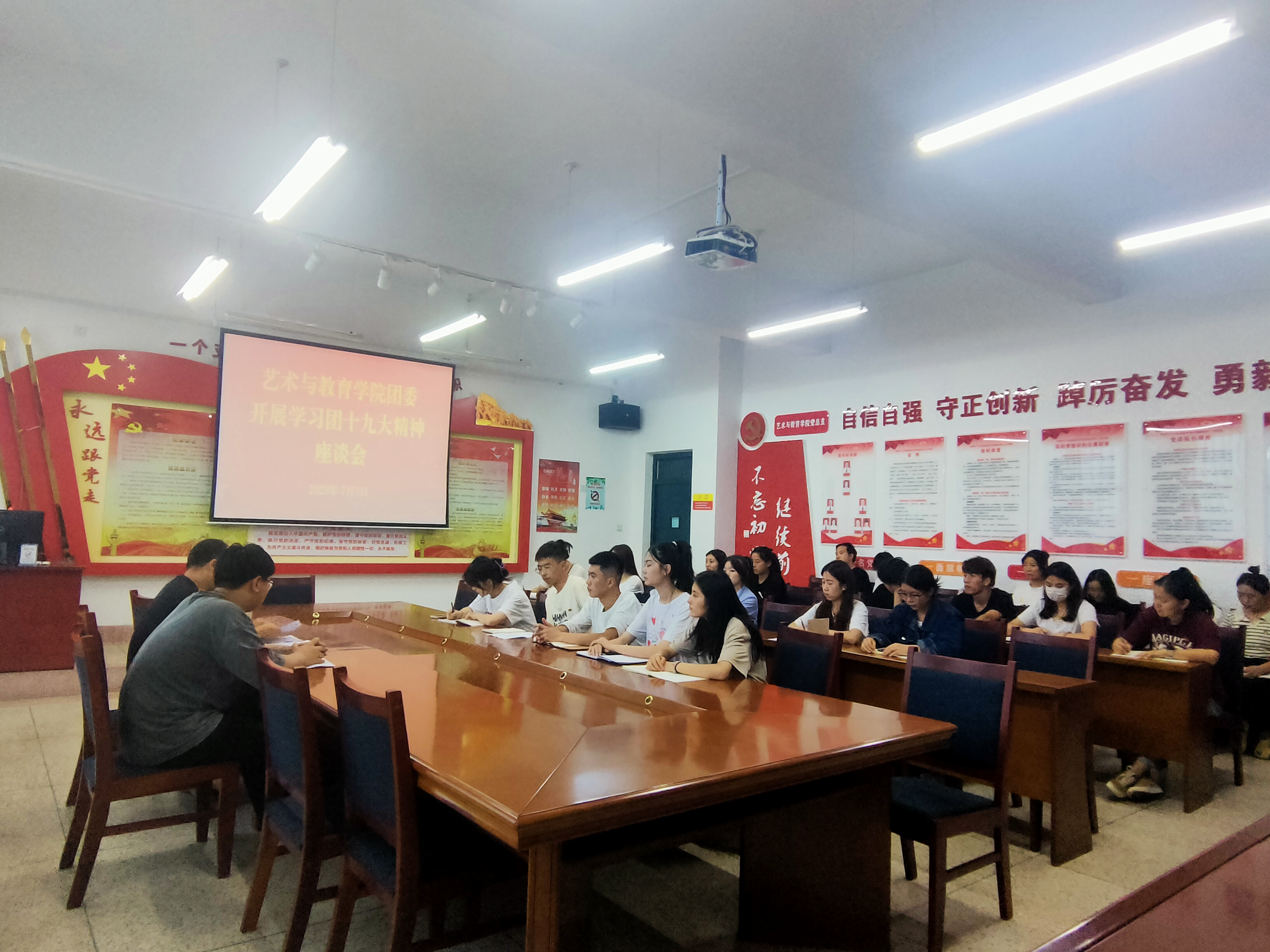 2023年7月3日晚,院團(tuán)委在勵勤樓209召開了學(xué)習(xí)團(tuán)十九大精神座談會。會議由團(tuán)委書記唐鑫基主持,全體團(tuán)支部書記參加了會議。