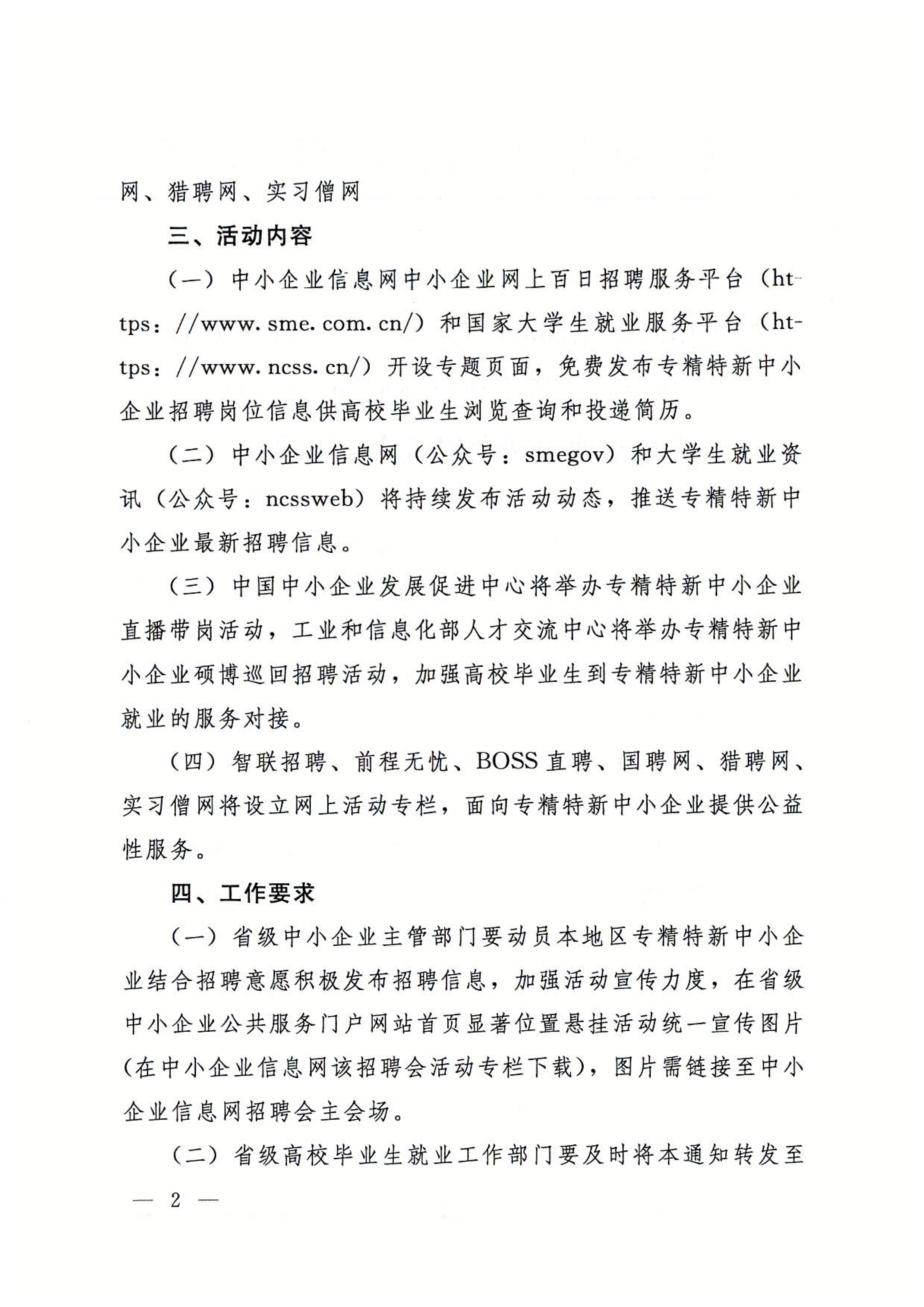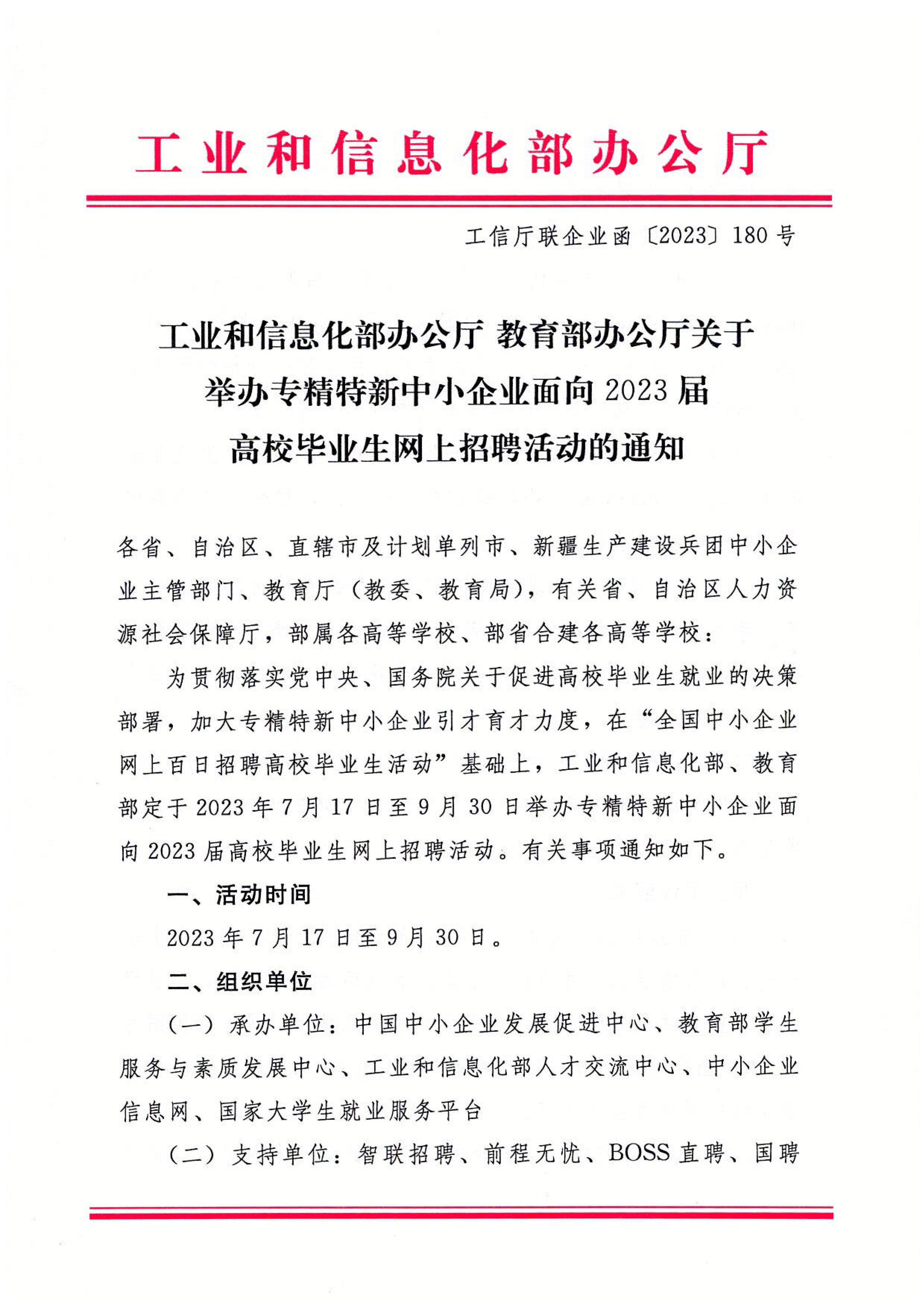 關(guān)于舉辦專精特新中小企業(yè)面向2023屆高校畢業(yè)生網(wǎng)上招聘活動(dòng)的通知