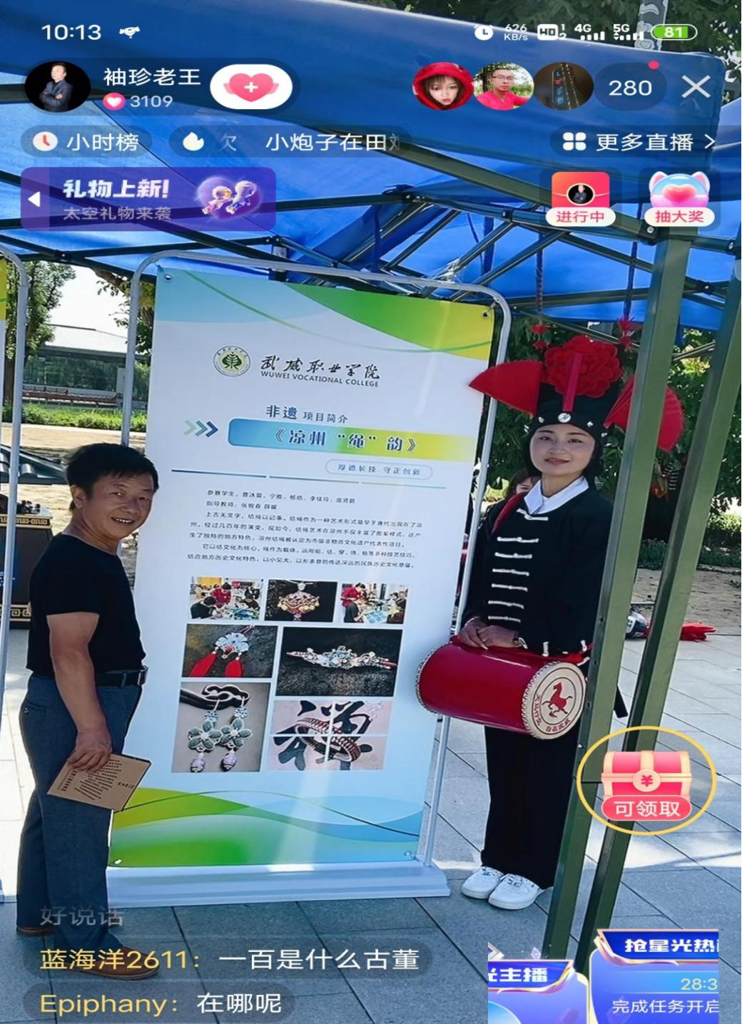 為深入學習貫徹習近平新時代中國特色社會主義思想和黨的二十大精神,引導和幫助廣大青年學生上好與現(xiàn)實結(jié)合的“大思政課”,厚植愛農(nóng)情懷,練就過硬本領。暑假期間,經(jīng)濟管理學院組建了“特色高效農(nóng)業(yè)電商直播+非遺傳承”鄉(xiāng)村振興促進團,開展暑期“三下鄉(xiāng)”社會實踐活動,通過深入雷臺景區(qū)、古浪縣和民勤縣,宣傳國家級非物質(zhì)文化遺產(chǎn),結(jié)合抖音直播與新媒體宣揚非遺文化-涼州攻鼓子,為非遺傳承注入青春力量。