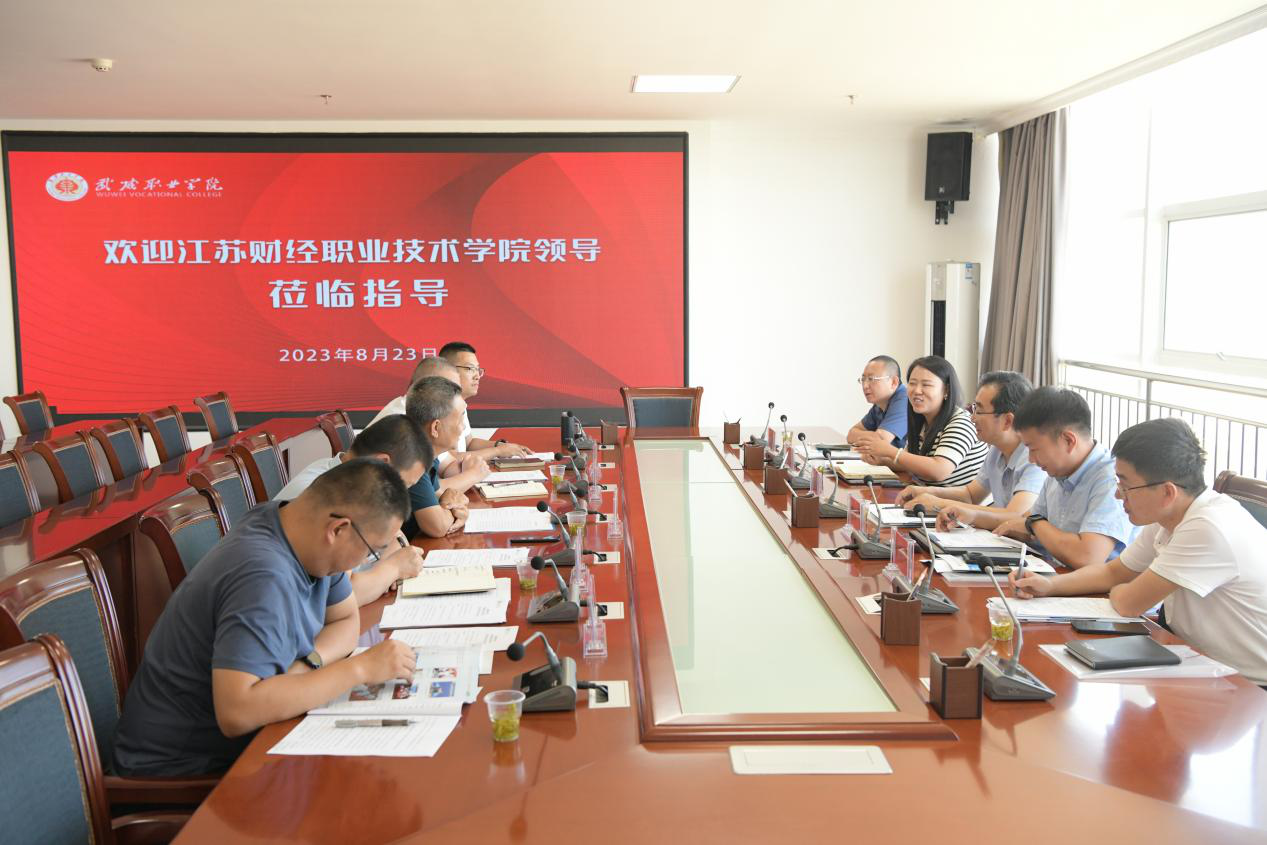 趙明代表學(xué)校對程淮中一行的到訪表示歡迎,對學(xué)校發(fā)展歷程、辦學(xué)理念、校企合作、特色亮點(diǎn)和辦學(xué)成效等情況進(jìn)行了介紹。占發(fā)禹就經(jīng)濟(jì)管理學(xué)院會計實(shí)務(wù)技能大賽的備賽情況向與會人員作了簡要匯報。程淮中表示武威職業(yè)學(xué)院辦學(xué)歷史悠久,定位清晰,特色鮮明,發(fā)展?jié)摿Υ?,對學(xué)校發(fā)展和會計實(shí)務(wù)技能大賽準(zhǔn)備情況表示贊賞和肯定,并圍繞“現(xiàn)代產(chǎn)業(yè)學(xué)院助力職業(yè)教育高質(zhì)量發(fā)展”分享了自己的經(jīng)驗(yàn)想法。王守云表示雙方要加強(qiáng)交流與合作,互學(xué)互鑒,互促互進(jìn),共同為職業(yè)教育高質(zhì)量發(fā)展作出新貢獻(xiàn)。