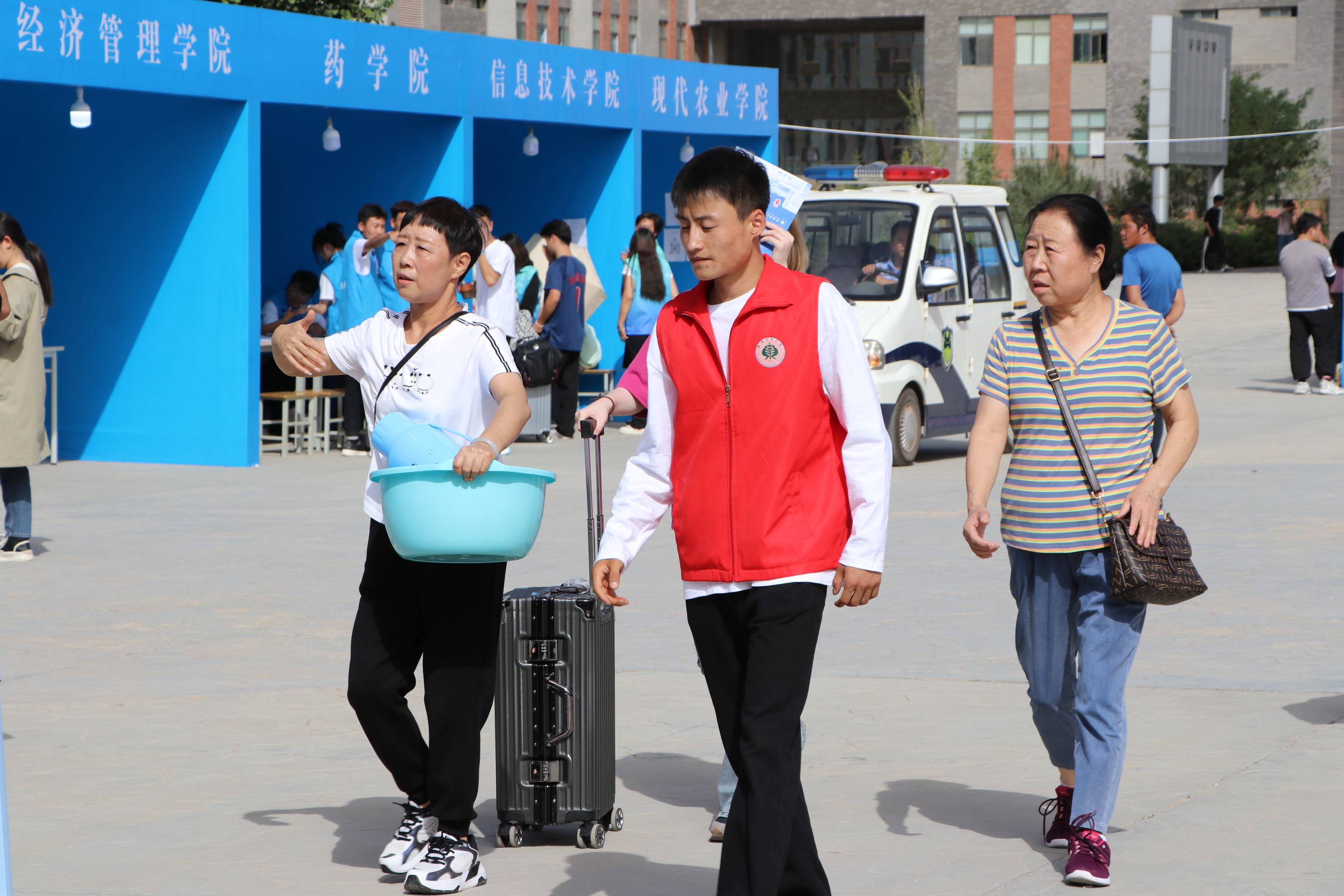 為做好迎新工作,學(xué)校各部門、二級(jí)學(xué)院精心組織,志愿者和工作人員為新生和家長(zhǎng)提供細(xì)致周到的服務(wù),讓新生和家長(zhǎng)第一時(shí)間就能感受到學(xué)校的熱情和暖心。校內(nèi)迎新站點(diǎn)前,一輛輛行李車、小推車虛位以待,志愿者們有條不紊,熱情洋溢,為新生提供一站式服務(wù),并耐心為家長(zhǎng)答疑解惑。學(xué)校開通“綠色通道”,推出資助政策和各項(xiàng)措施,確保每一位新生安心入學(xué)、舒心生活。LED大屏滾動(dòng)播放學(xué)校2023年新生實(shí)時(shí)報(bào)到數(shù)據(jù),讓新生和家長(zhǎng)及時(shí)了解學(xué)校和報(bào)到情況。