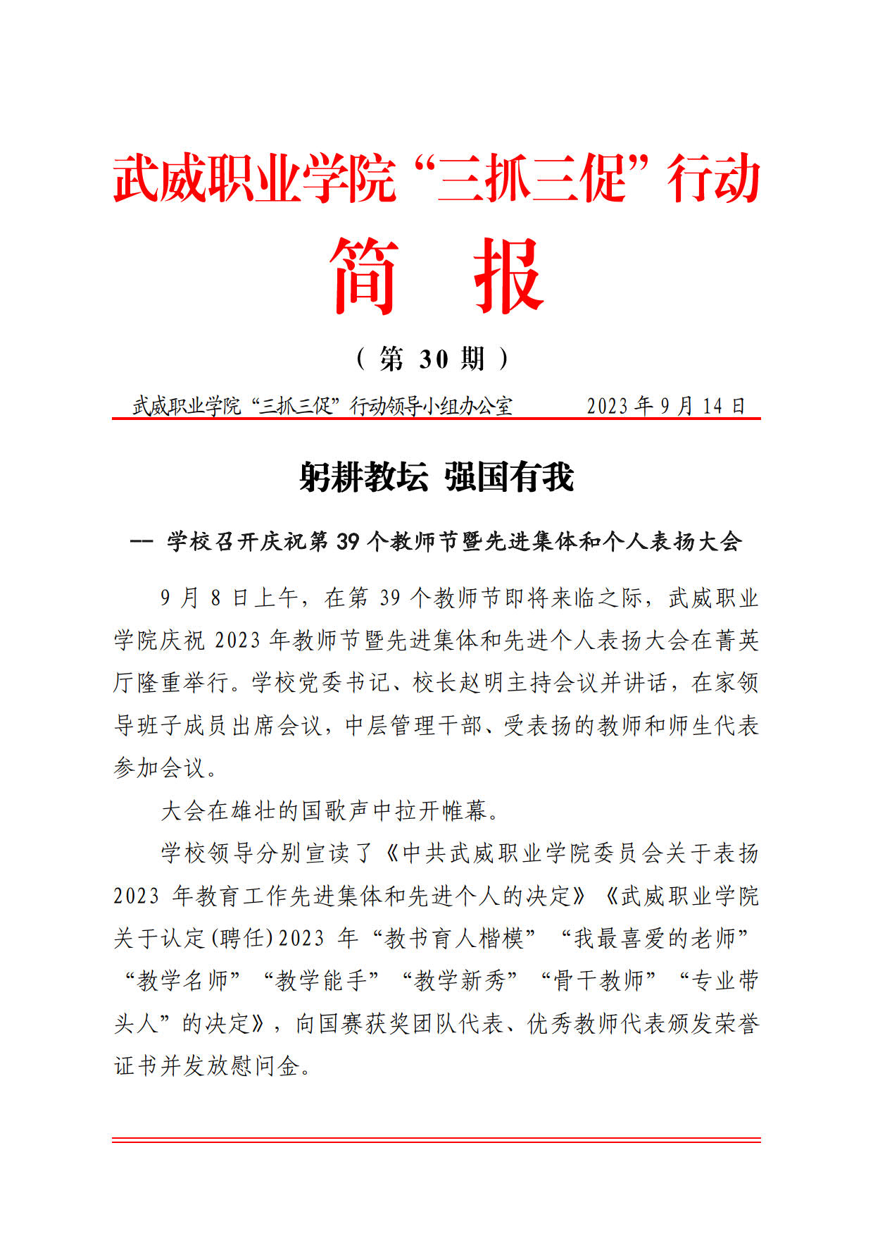 簡報第30期 躬耕教壇 強(qiáng)國有我