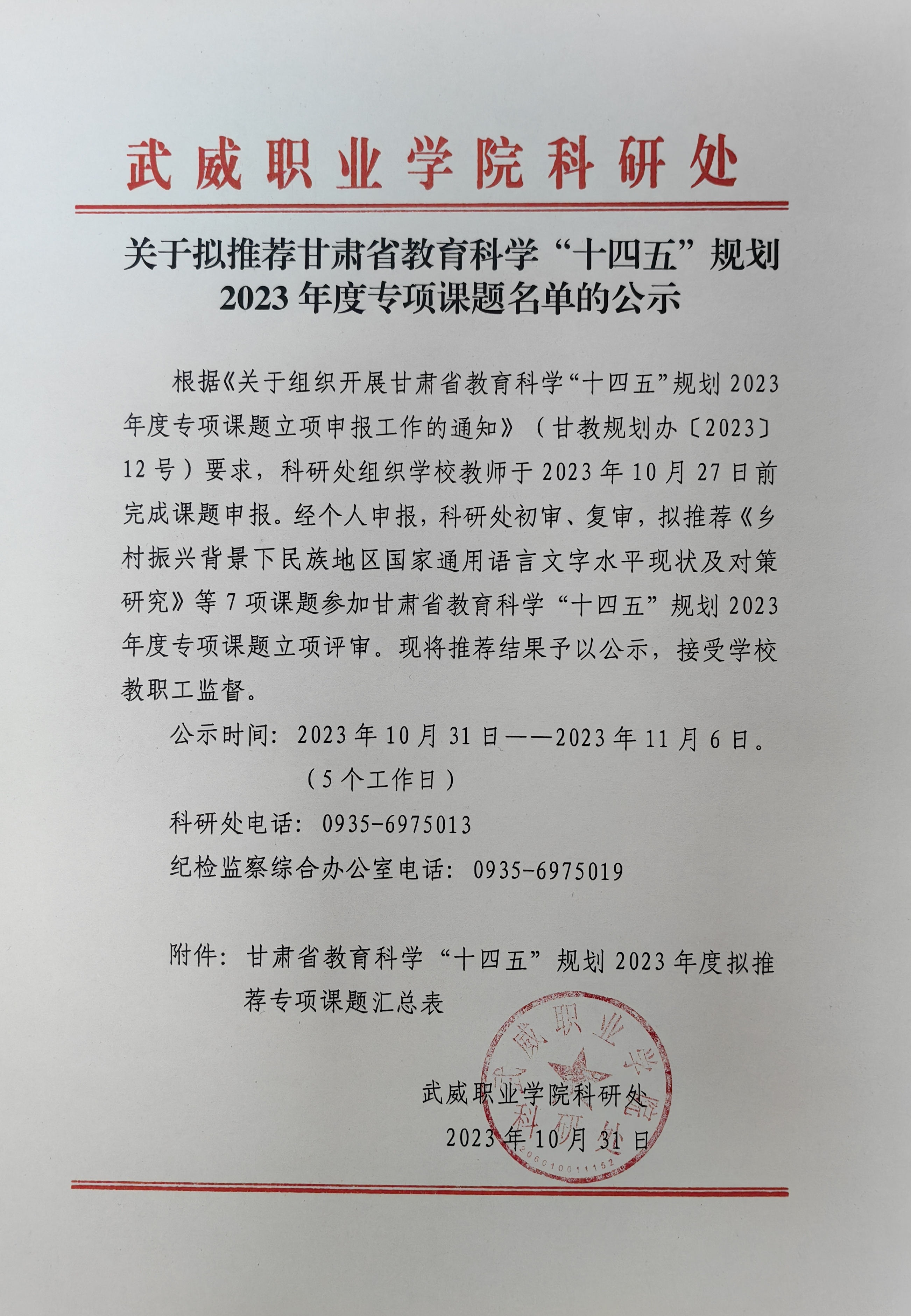 關(guān)于擬推薦甘肅省教育科學(xué)“十四五”規(guī)劃2023年度專項課題名單的公示