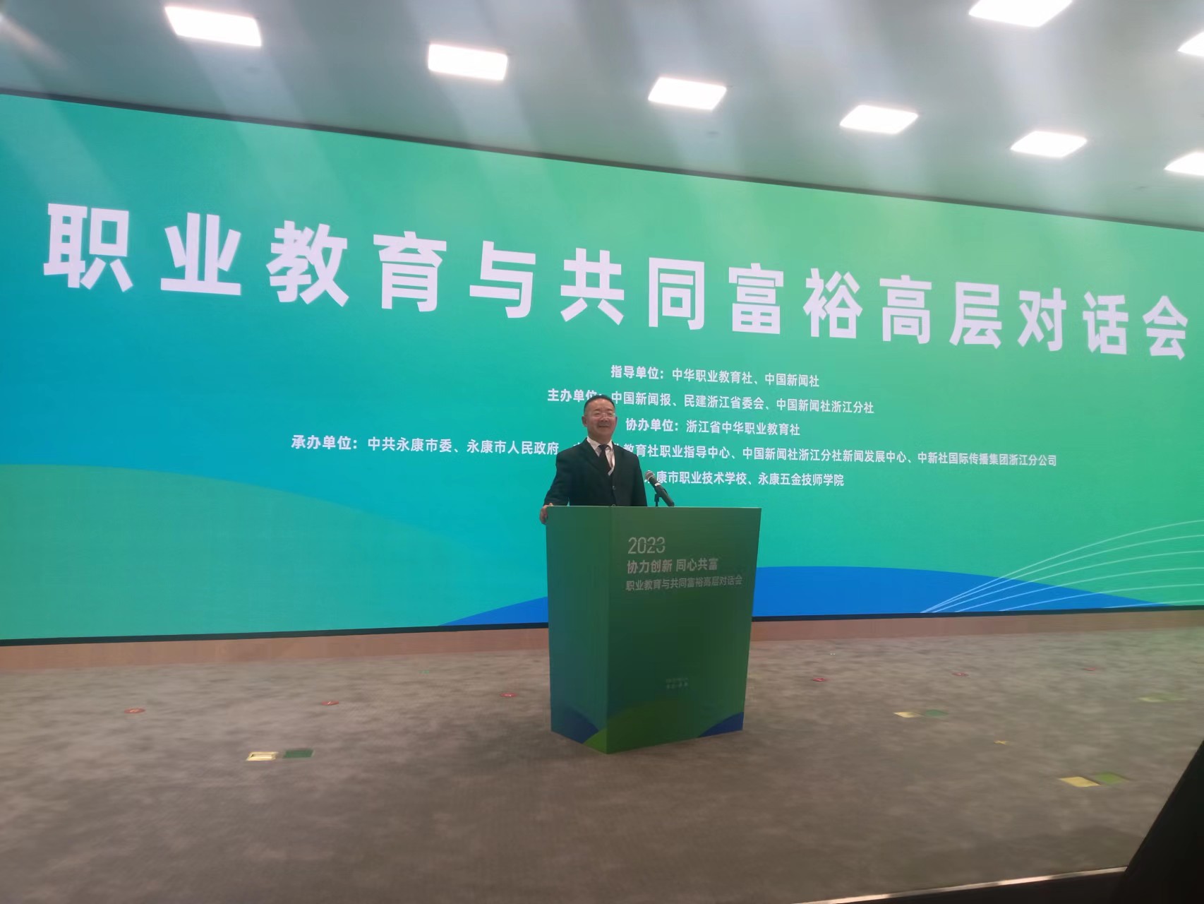 10月26日至27日,職業(yè)教育與共同富裕高層對話會在浙江金華永康市舉行。會議以“協(xié)力創(chuàng)新 同心共富”為主題,由中華職業(yè)教育社、中國新聞社指導(dǎo),中國新聞報(bào)、民建浙江省委會和中國新聞社浙江分社主辦,浙江省中華職業(yè)教育社協(xié)辦。全國人大常委會副委員長、中華職業(yè)教育社理事長郝明金,浙江省政協(xié)副主席、浙江省中華職業(yè)教育社主任陳小平出席會議,國內(nèi)職業(yè)教育領(lǐng)域?qū)<?、學(xué)者及職業(yè)院校、行業(yè)協(xié)會、學(xué)術(shù)機(jī)構(gòu)代表等約300人圍繞東西協(xié)作、產(chǎn)教融合等議題展開深入探討。