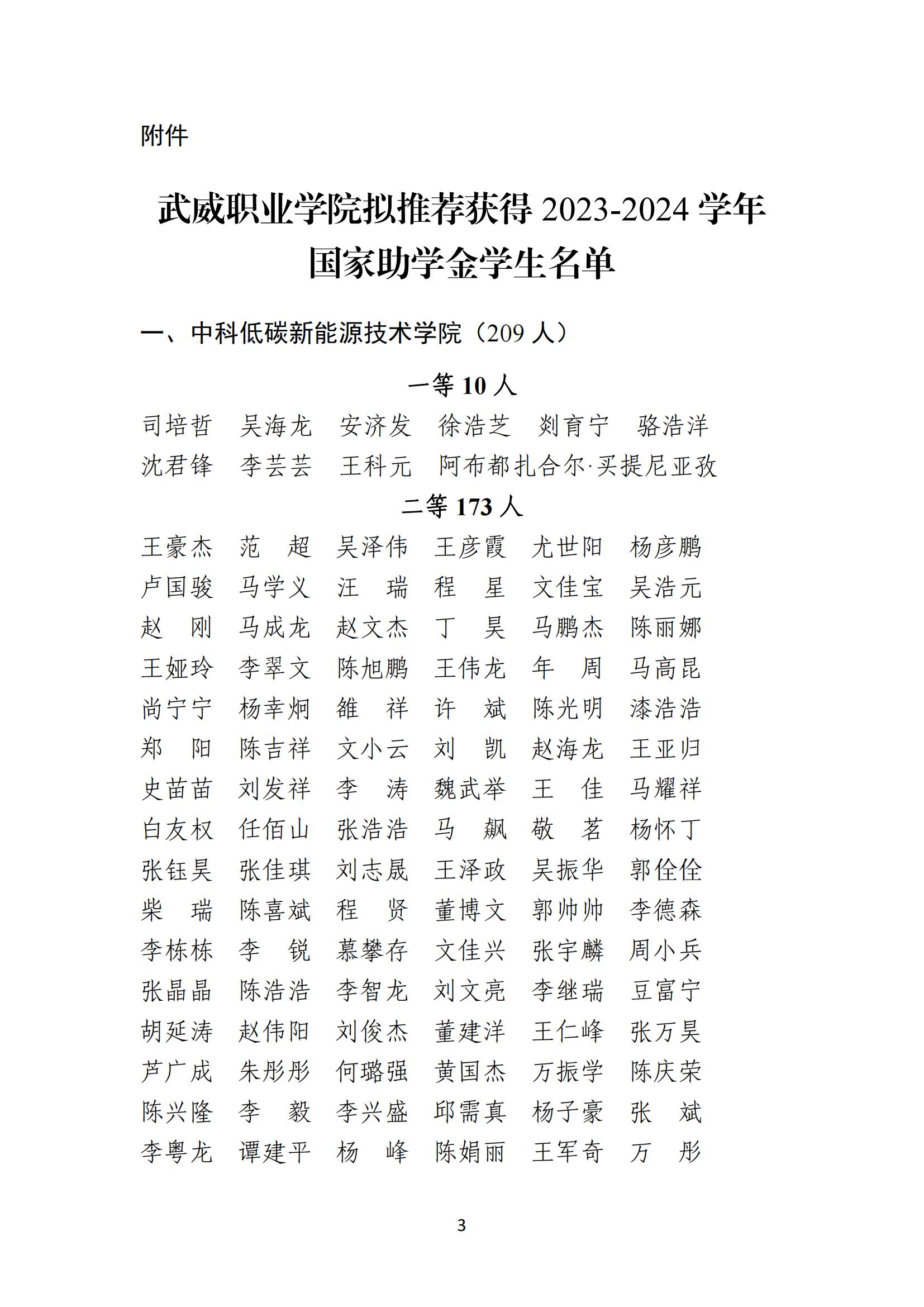 武威職業(yè)學(xué)院關(guān)于2023-2024學(xué)年國家助學(xué)金評(píng)選結(jié)果的公示