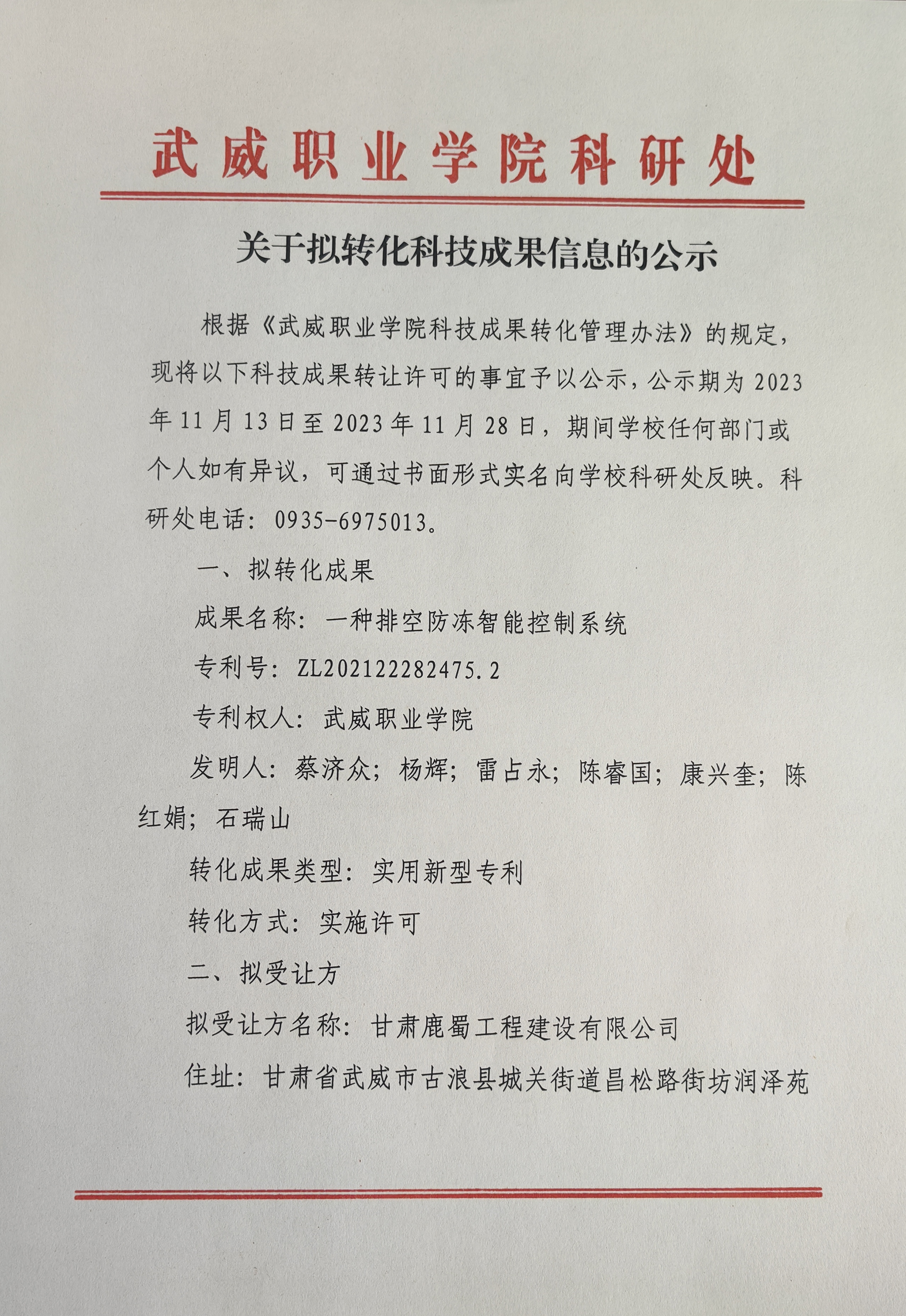 歡迎光臨武威職業(yè)學院 科技處! 今天是: