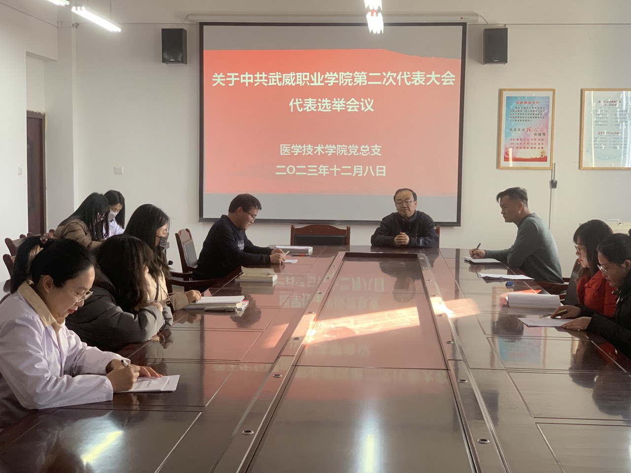 根據學校黨委統一部署,12月8日上午,醫(yī)學技術學院黨總支在尚德樓404會議室召開黨員大會,選舉產生出席學校第二次黨代會代表,會議由醫(yī)學技術學院黨總支書記黃文源主持。