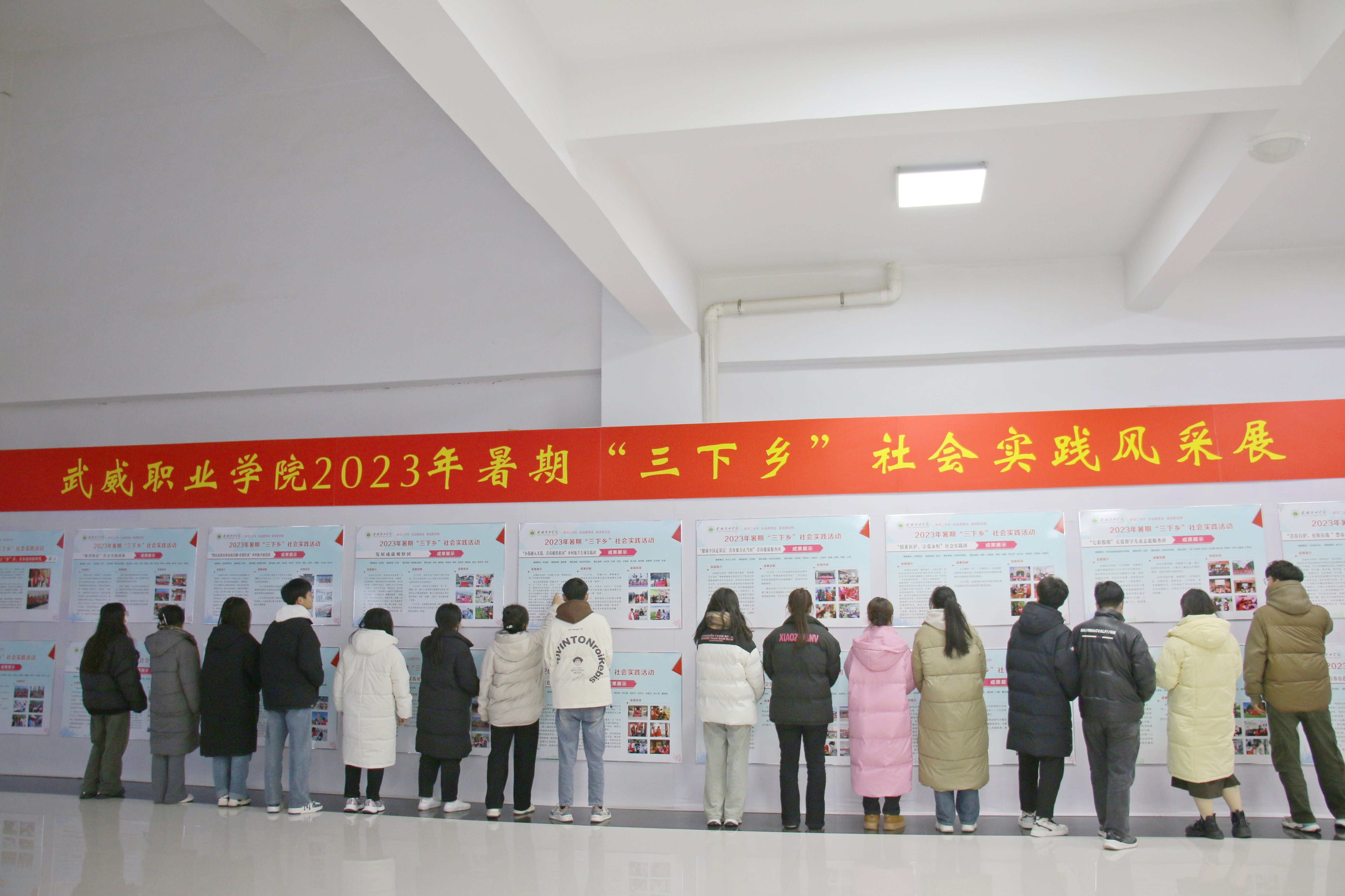 12月上旬,學(xué)校在菁英廳大廳組織開展了2023年大學(xué)生暑期“三下鄉(xiāng)”社會實踐活動風(fēng)采展示活動。各實踐團隊精心制作團隊實踐風(fēng)采展板,集中展示了青年學(xué)子積極投身地方高質(zhì)量發(fā)展志愿服務(wù)實踐的典型人物、鮮活事例和具有可操作性、推廣性的研究成果及創(chuàng)新特色。各二級學(xué)院利用課余時間組織學(xué)生進(jìn)行了參觀學(xué)習(xí),使廣大青年深入了解各類社會實踐活動的開展情況,引導(dǎo)青年學(xué)生積極參與實踐,吸收新的知識和思想,開拓視野,增長才干,進(jìn)一步提升了實踐育人效果。