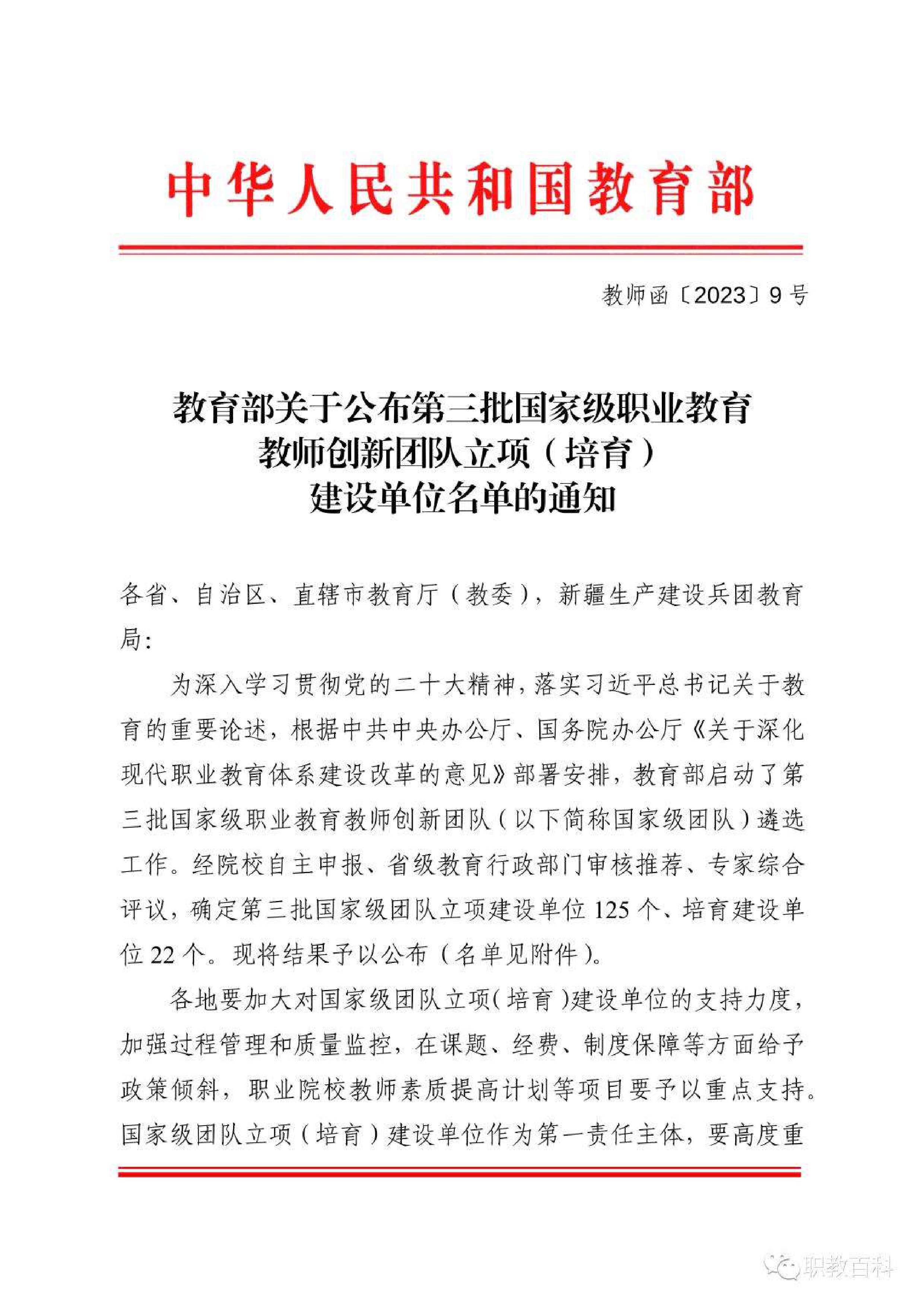 近日,教育部公布了《教育部關于公布第三批國家級職業(yè)教育教師創(chuàng)新團隊立項(培育)建設單位名單的通知》(教師函〔2023〕9號),學院黃述杰教授主持的“光伏工程技術”專業(yè)教師團隊成功入選。這是學校首次入選國家級職業(yè)教育教師創(chuàng)新團隊立項建設單位,實現(xiàn)了學校教學團隊“國家級”項目零的突破,也是學?!半p高”項目建設和高質(zhì)量發(fā)展中取得的又一項國家級標志性成果。