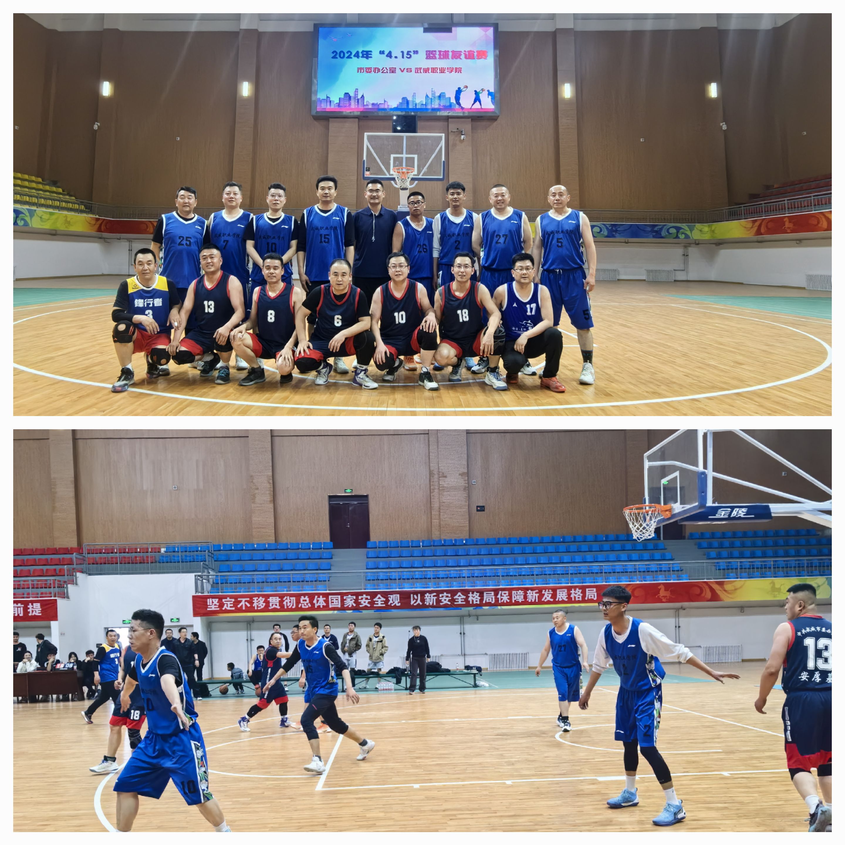 4月10日—4月14日,經(jīng)市委國安辦和市防線辦協(xié)商,在學(xué)校舉辦了主題鮮明、效果顯著的干部職工籃球邀請賽,市委辦、市委組織部、市防線辦、武威職業(yè)學(xué)院等8個市委國安委委員單位,各學(xué)院學(xué)生代表2000余人參加?;顒又?,各單位參加人員以體育競技精神激發(fā)干事創(chuàng)業(yè)的熱情進一步營造了濃厚的宣傳氛圍,以新征程上展現(xiàn)新作為的精神推進了學(xué)校國家安全教育事業(yè)的發(fā)展。
