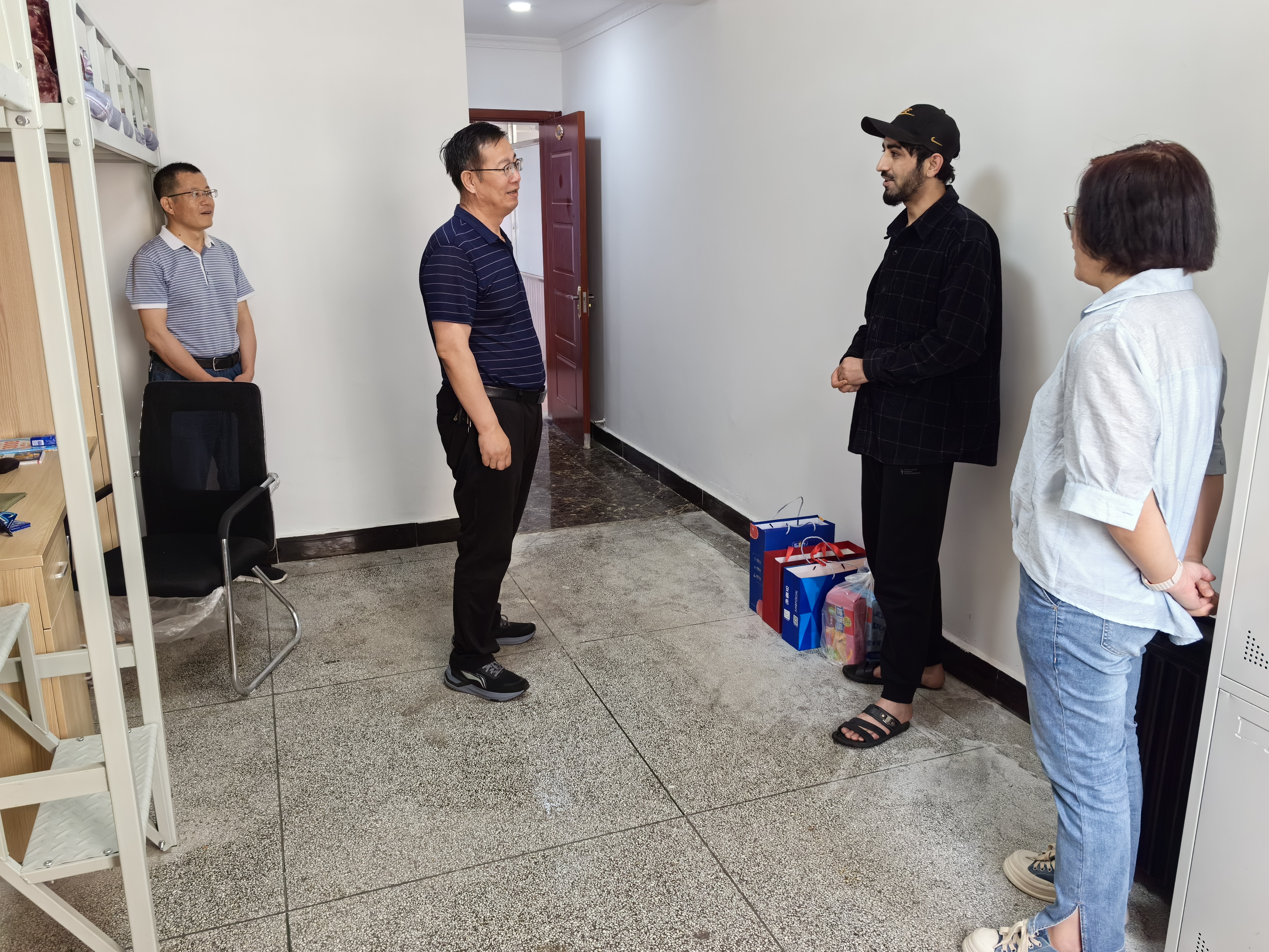 6月10日,適逢中華民族傳統(tǒng)節(jié)日端午節(jié),學(xué)校黨委副書(shū)記、校長(zhǎng)張開(kāi)禮看望、慰問(wèn)來(lái)華留學(xué)生。國(guó)際合作交流處處長(zhǎng)李亞梅參加慰問(wèn)。