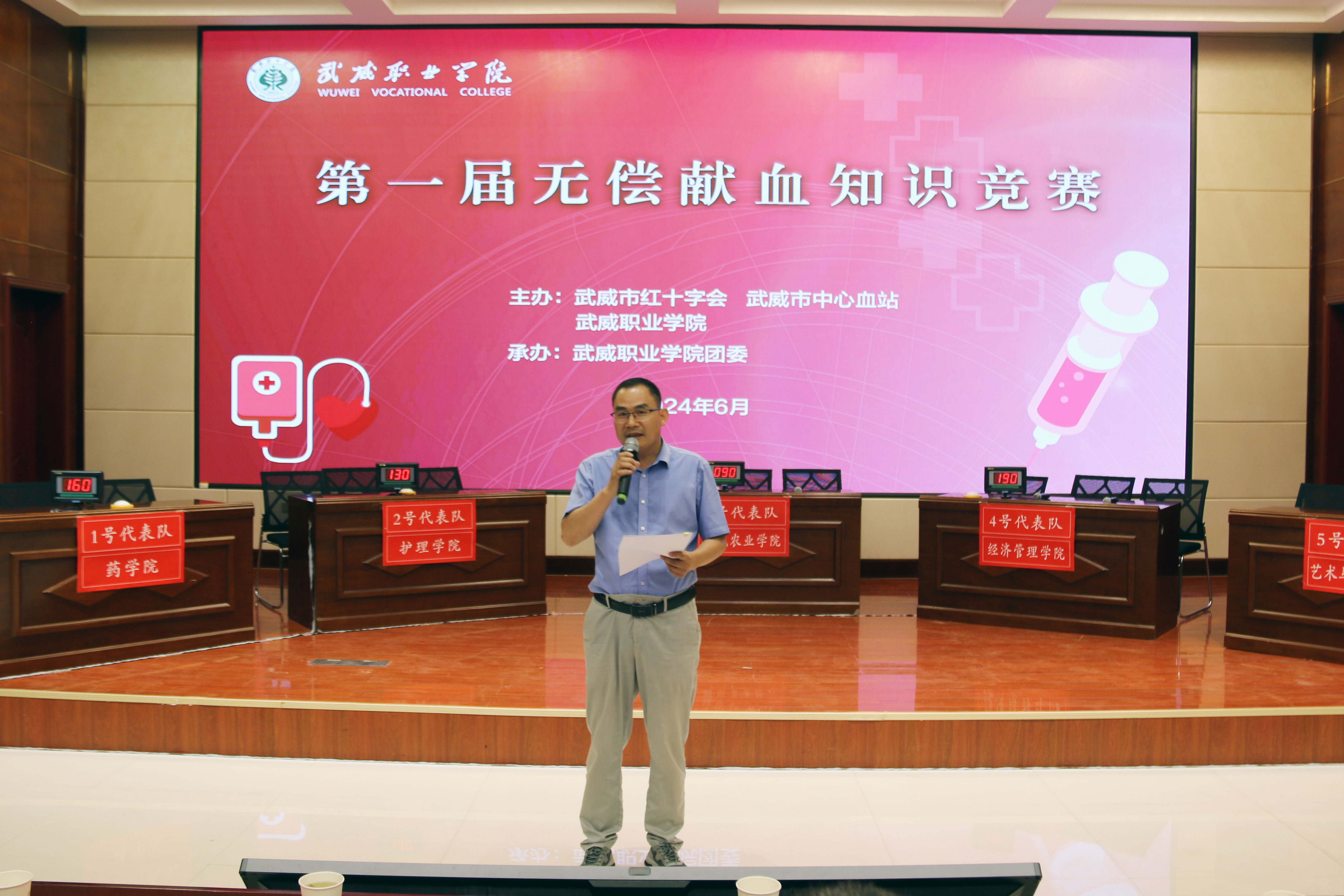 武威市紅十字會副會長張勇,武威市中心血站站長王磊,武威市中心血站副站長岳文清,學(xué)校黨委委員、副校長王永緒出席活動,各二級學(xué)院的200余名師生觀看比賽。