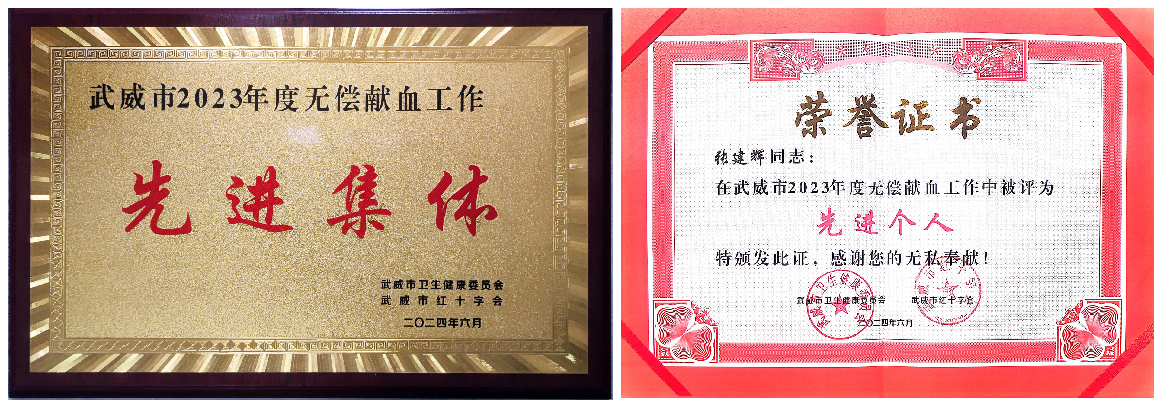 6月14日上午,我市2024年“6·14”世界獻(xiàn)血者日暨《武威市獻(xiàn)血條例》頒布宣傳活動(dòng)在南城門廣場舉辦。市人大常委會(huì)副主任劉光美宣讀《條例》頒布公告,并為全市2023年度無償獻(xiàn)血工作先進(jìn)集體、應(yīng)急獻(xiàn)血先進(jìn)集體和先進(jìn)個(gè)人頒發(fā)獎(jiǎng)牌和榮譽(yù)證書。學(xué)校被評(píng)為武威市2023年度無償獻(xiàn)血工作先進(jìn)集體,1名教師被評(píng)為先進(jìn)個(gè)人。