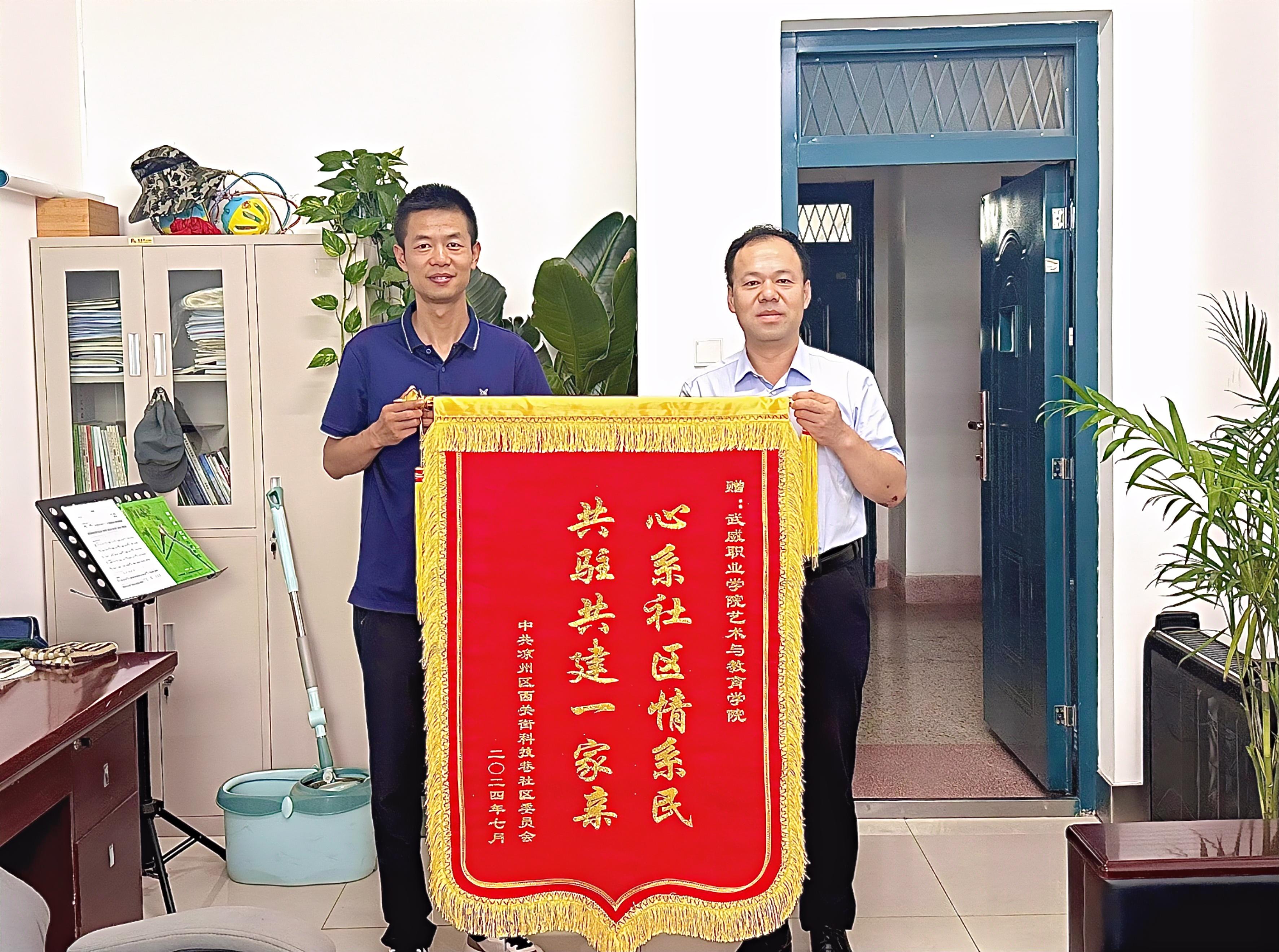 一份榮譽,一份信任,一份鼓勵。此次贈旗是對我院在西關(guān)科技巷社區(qū)開展社會實踐活動成果的充分肯定,有助于進一步調(diào)動學(xué)生參與社會實踐活動的積極性,教育引導(dǎo)學(xué)生在社會課堂中“受教育、展才干、作貢獻”。下一步,我院將深入推進學(xué)生志愿服務(wù)活動,為基層社會治理和文明武威高質(zhì)量發(fā)展添磚加瓦!