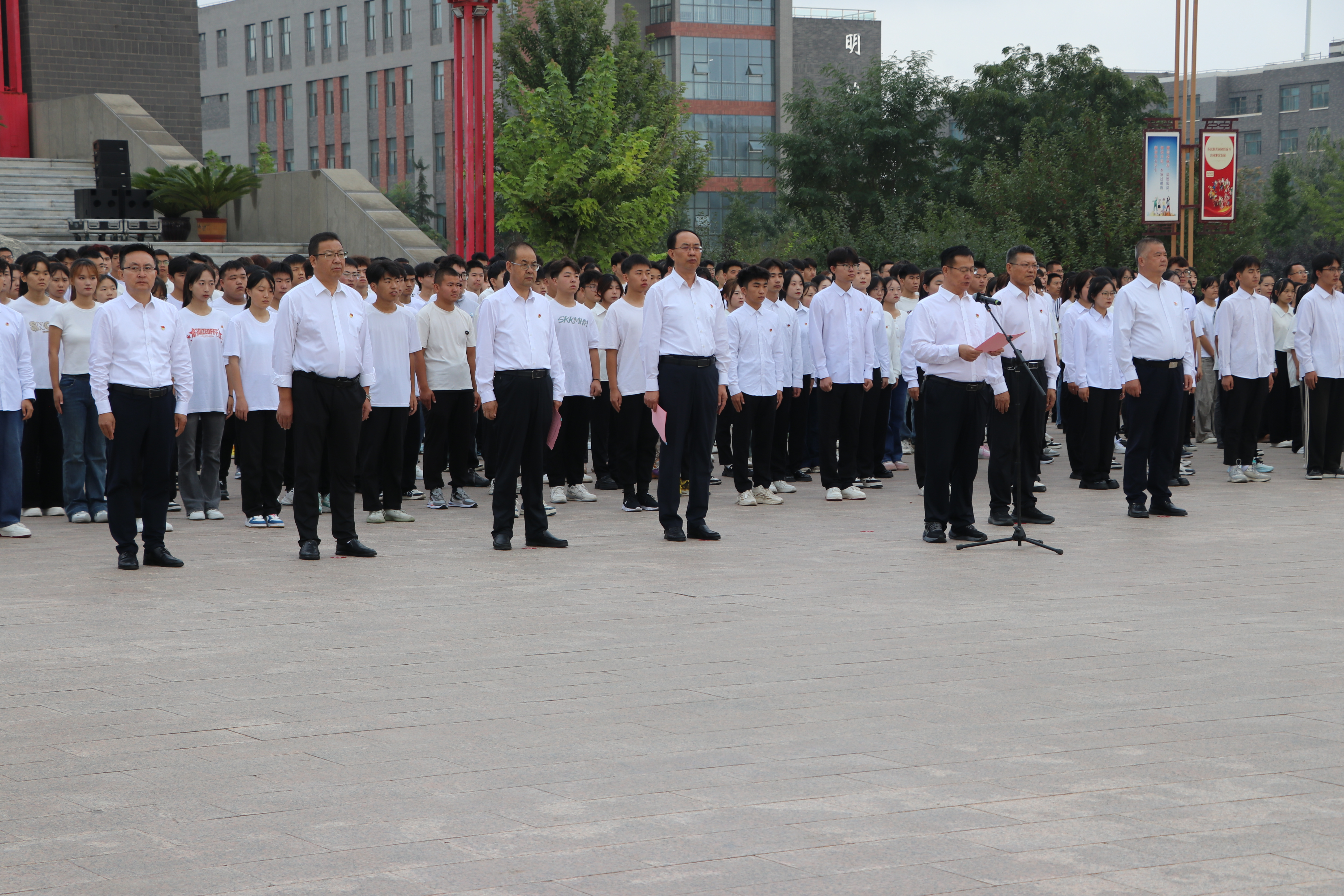 王宏在國旗下為全體師生講授了“開學第一課”。他回顧了一年來學校發(fā)展取得的重要成就,指出學校邁向更高層次、更高水平的重大機遇,并對新學期全體師生員工提出四點希望:希望同學在新時代要有新理想,要深入學習貫徹黨的二十屆三中全會精神,努力為強國建設、民族復興偉業(yè)貢獻青春力量;希望同學們在新學期要有新作為,大力弘揚優(yōu)良學風,以實際行動為武威職業(yè)學院高質(zhì)量發(fā)展添磚加瓦;希望同學們在新學期要有新收獲,要腳踏實地、夯實基礎,積極交流、互幫互助,收獲多彩大學時光;希望全校教職員工在新學期要有新?lián)?,要勇?lián)率姑?、錘煉新作風、展現(xiàn)新作為,以一流業(yè)績迎接第40個教師節(jié)和中華人民共和國成立75周年。