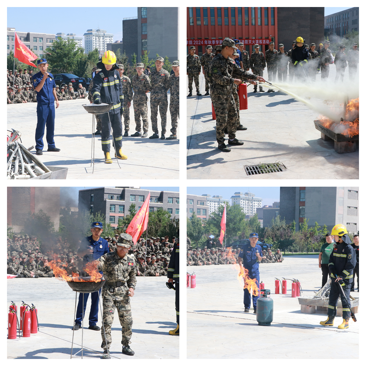 9月7日上午,學(xué)校舉辦2024年秋季學(xué)期應(yīng)急疏散暨消防滅火演練活動(dòng)。學(xué)校黨委委員、副校長王守云,軍訓(xùn)總教官謝紹璞中校,涼州區(qū)西關(guān)派出所副所長藺福鵬,演練小組領(lǐng)導(dǎo),新進(jìn)教師,新進(jìn)食堂員工,全體新生等共3200余人參加活動(dòng)?;顒?dòng)由王守云主持。