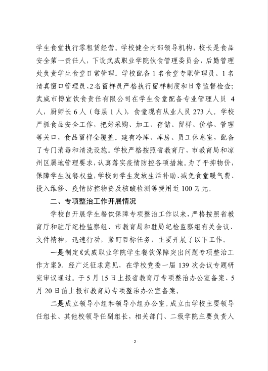 武威職業(yè)學(xué)院學(xué)生餐飲保障突出問(wèn)題自查自糾工作總結(jié)