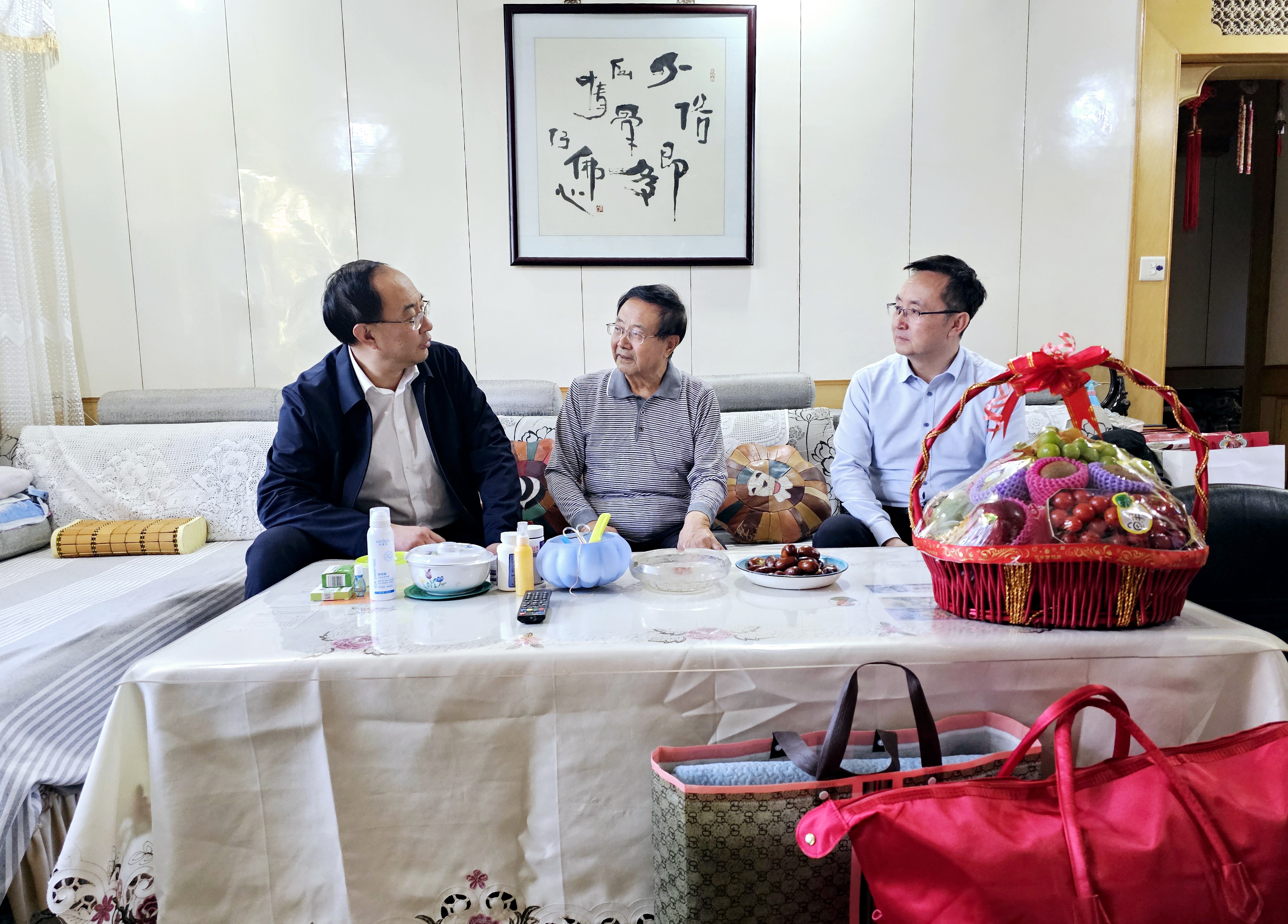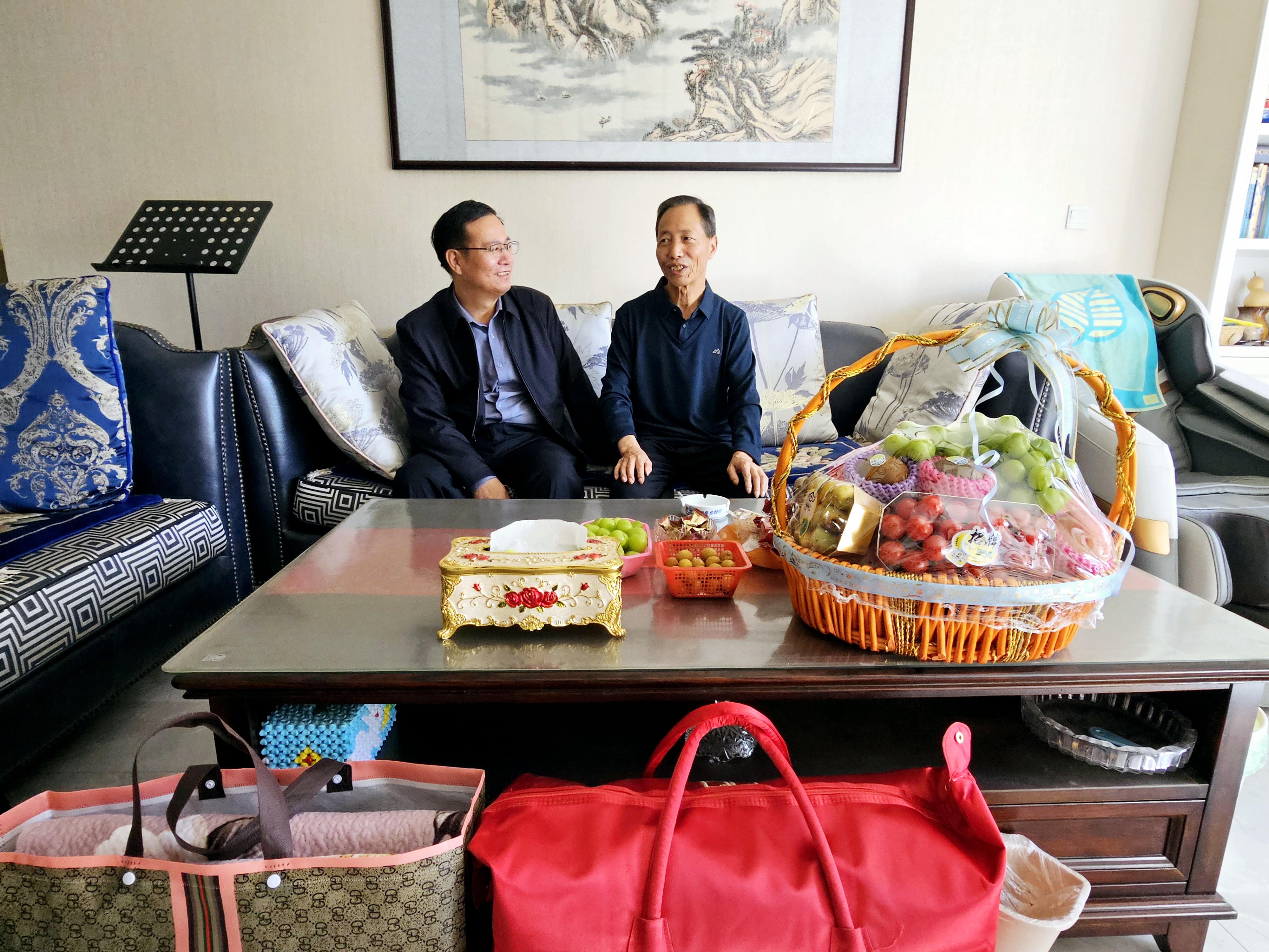在原黨委書記顏?zhàn)诿骷抑校h委書記王宏關(guān)切詢問其身體狀況和生活情況,共話近年來學(xué)校發(fā)展變化,暢談美好發(fā)展愿景,鼓勵(lì)他繼續(xù)發(fā)揮余熱,為學(xué)校發(fā)展建言獻(xiàn)策。
