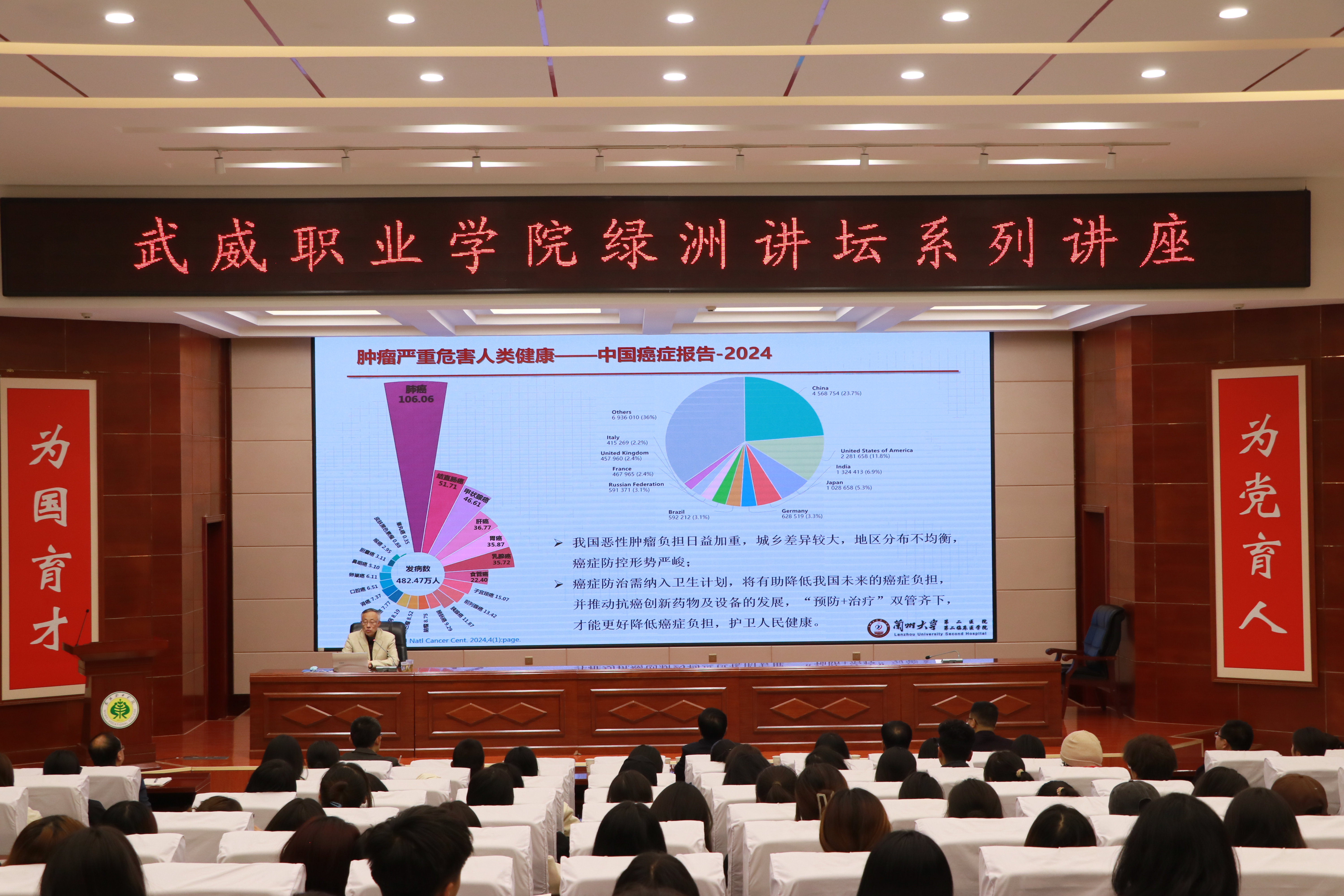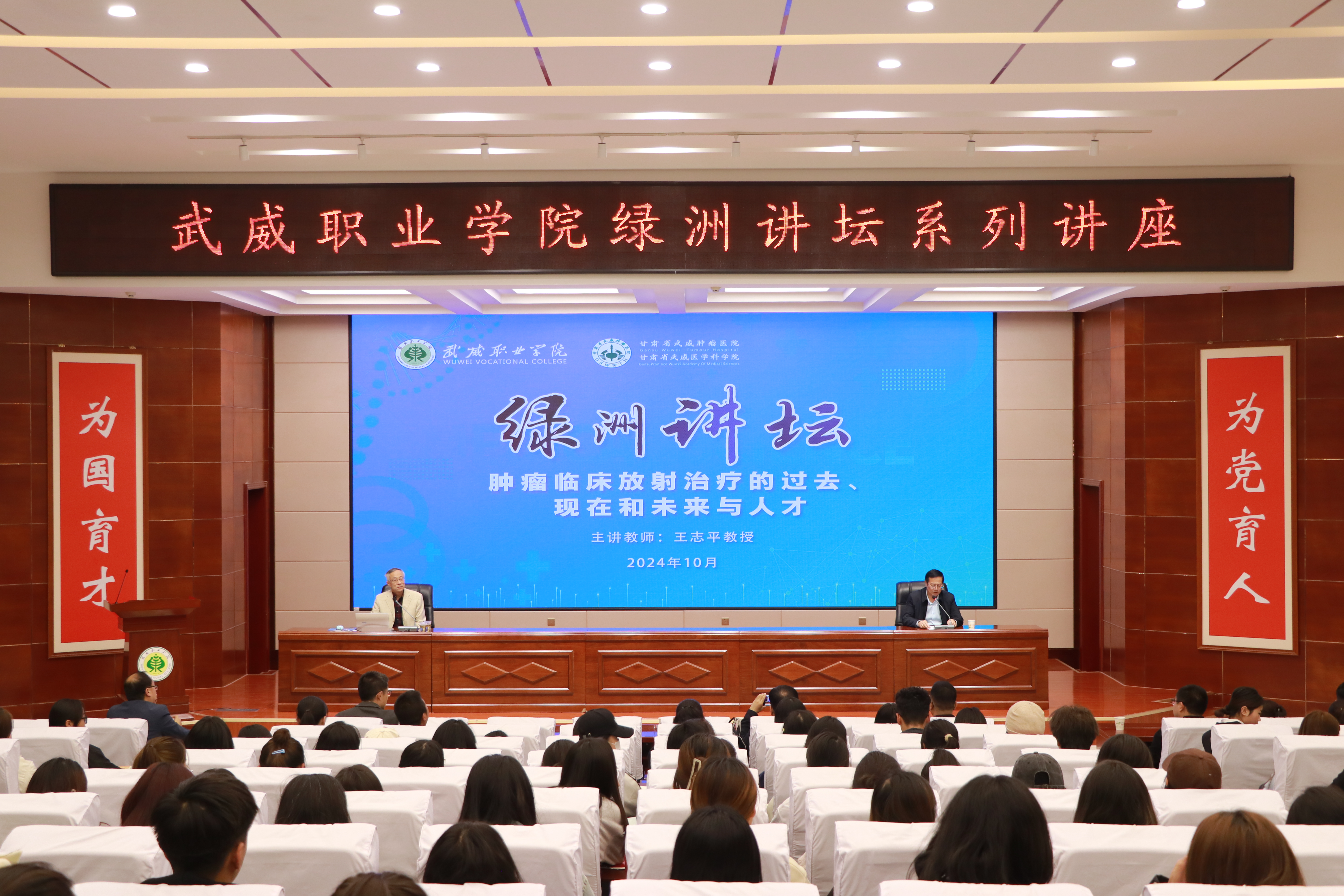 報(bào)告會(huì)由學(xué)校校長(zhǎng)、黨委副書記張開禮主持,特邀蘭州大學(xué)第二醫(yī)院王志平教授作了“腫瘤臨床放射治療的過去、現(xiàn)在和未來與人才”的主題講座,甘肅省武威醫(yī)學(xué)科學(xué)院腫瘤醫(yī)院醫(yī)護(hù)人員代表、蘭州大學(xué)實(shí)習(xí)生代表和學(xué)校師生代表共計(jì)220余人參加了報(bào)告會(huì)。