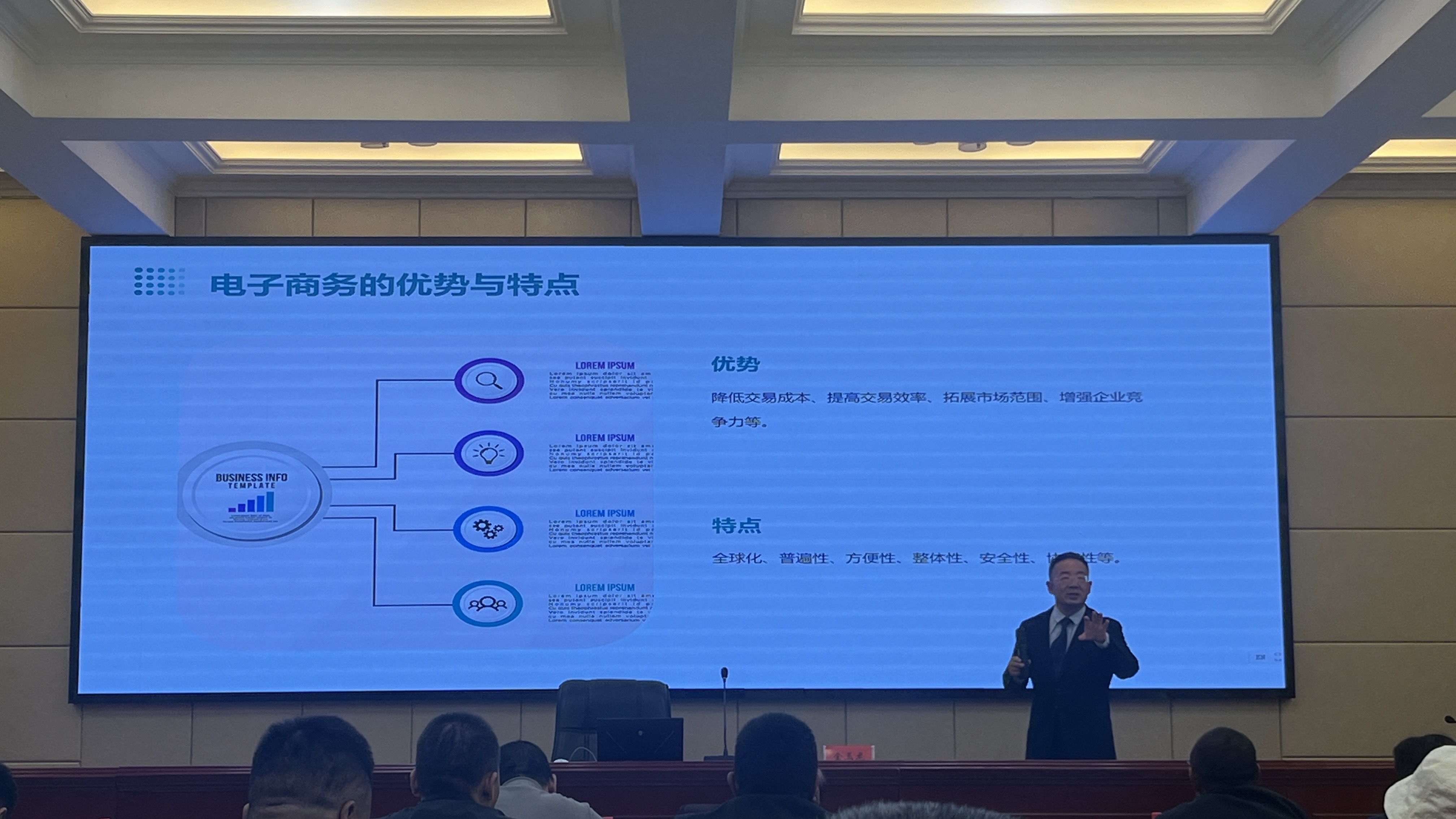 開班式后金玉龍老師做了電子商務(wù)發(fā)展、法律及經(jīng)營(yíng)風(fēng)險(xiǎn)培訓(xùn)講座。