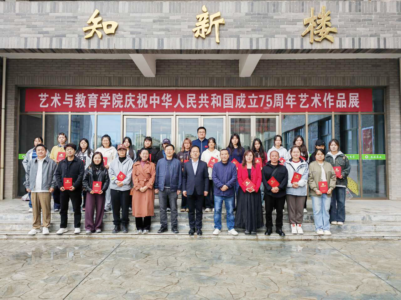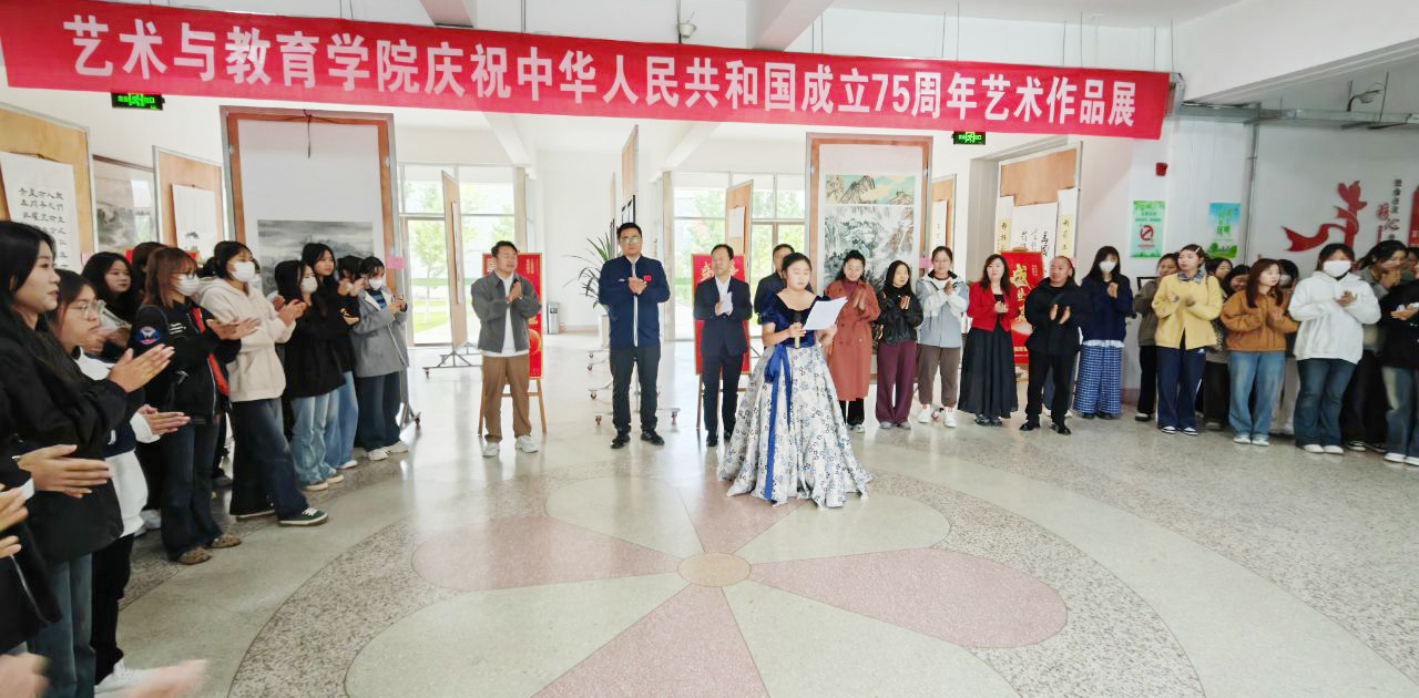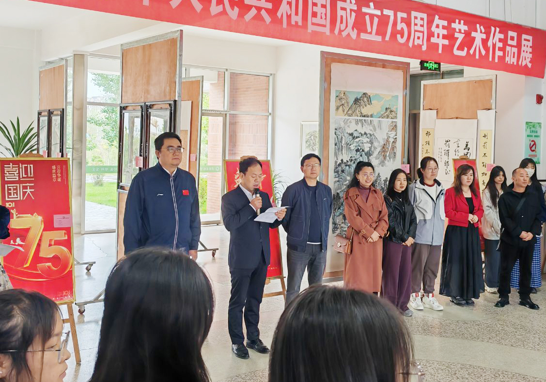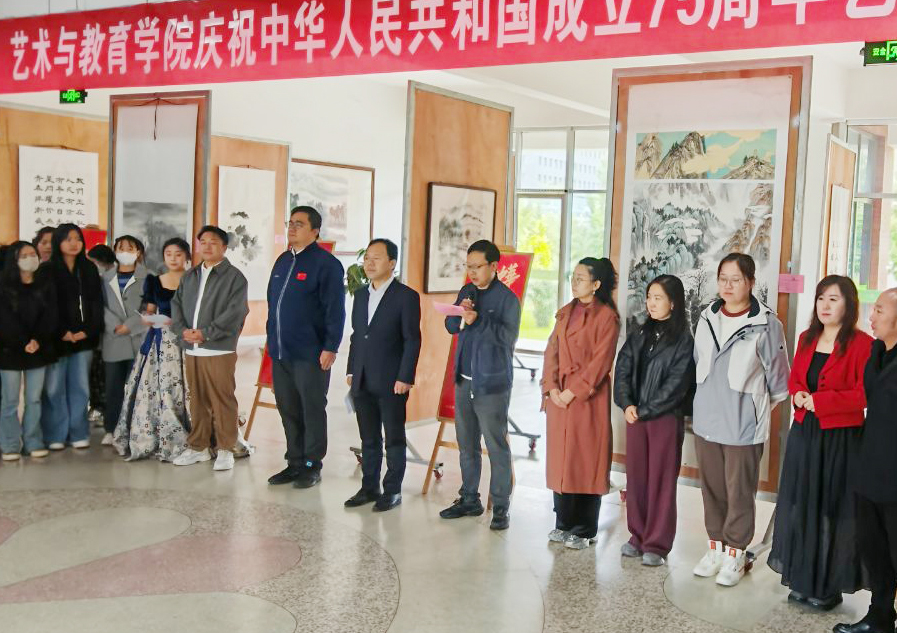 9月30日上午,藝術與教育學院慶祝新中國成立75周年藝術作品展在知新樓開幕。學院黨總支書記王政、副院長蘆小鵬,美術教研室全體教師及學生代表參加了開幕式。