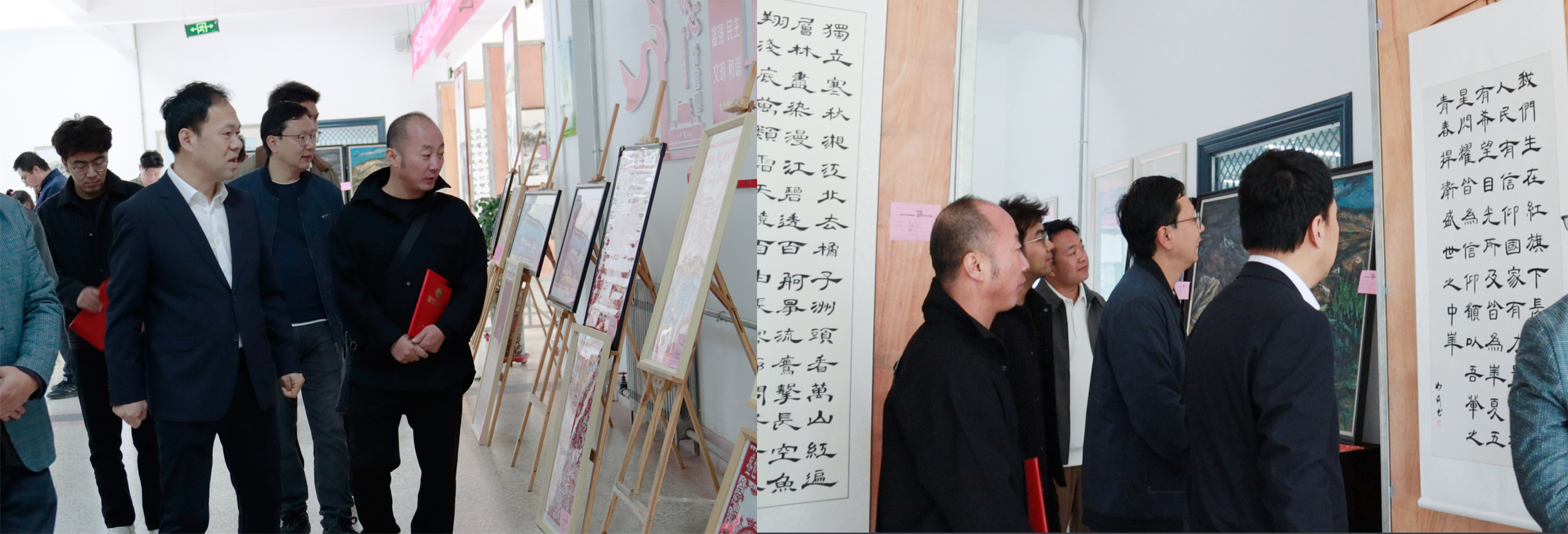 蘆小鵬介紹了藝術作品展征集和布展情況。本次展覽匯集了學院師生書畫、設計、剪紙、手工等200余件作品,最終遴選出75件作品入展,20件作品分獲一、二、三等獎。