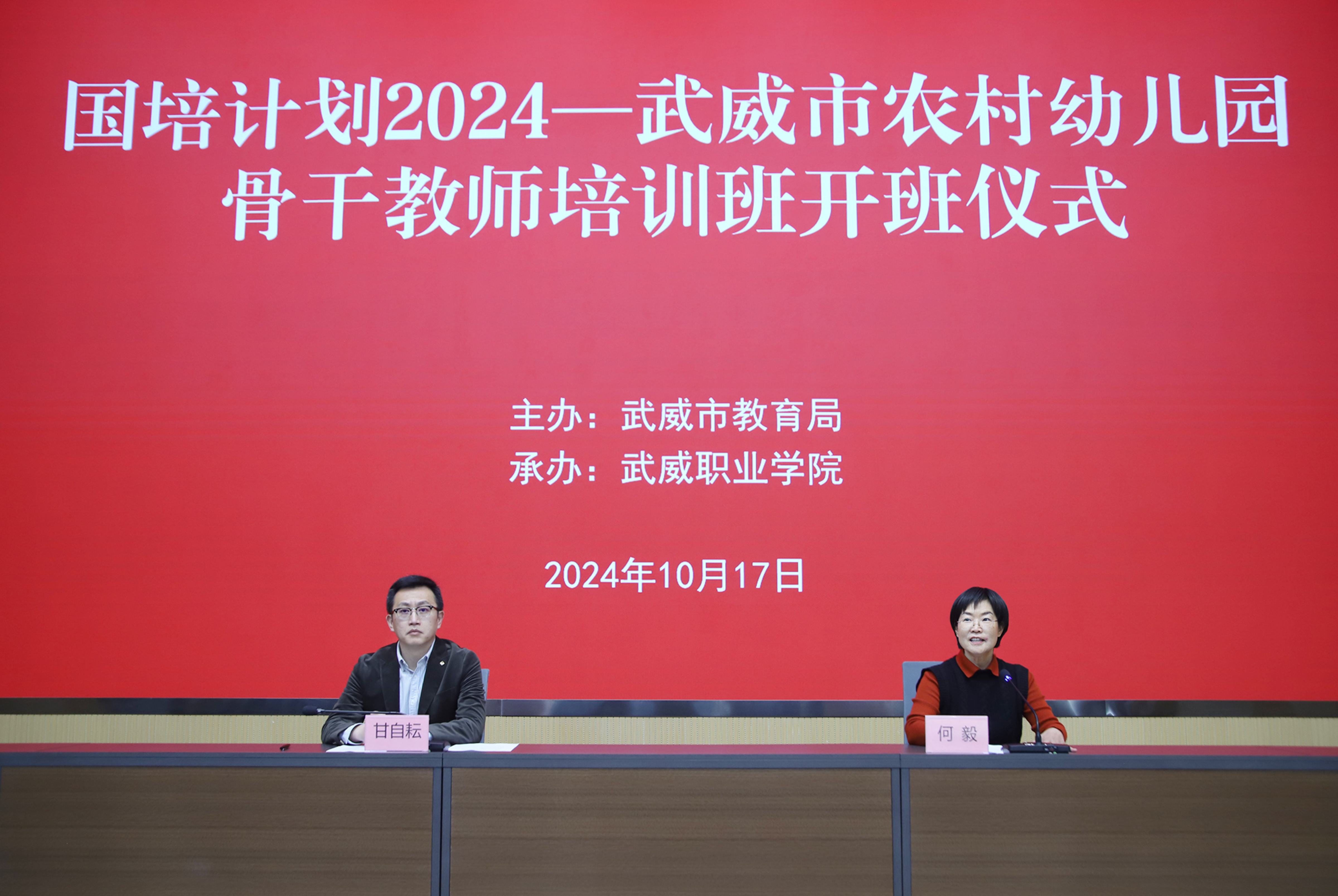 10月17日上午,由武威市教育局主辦,我校承辦的“國(guó)培計(jì)劃(2024)”—武威市農(nóng)村幼兒園骨干教師培訓(xùn)班在能源科技樓一樓報(bào)告廳順利開班,來自我市各農(nóng)村幼兒園的80名骨干教師參加培訓(xùn)。武威市教育局黨組成員、副局長(zhǎng)甘自耘出席開班儀式。學(xué)校黨委委員、副校長(zhǎng)何毅主持開班儀式。