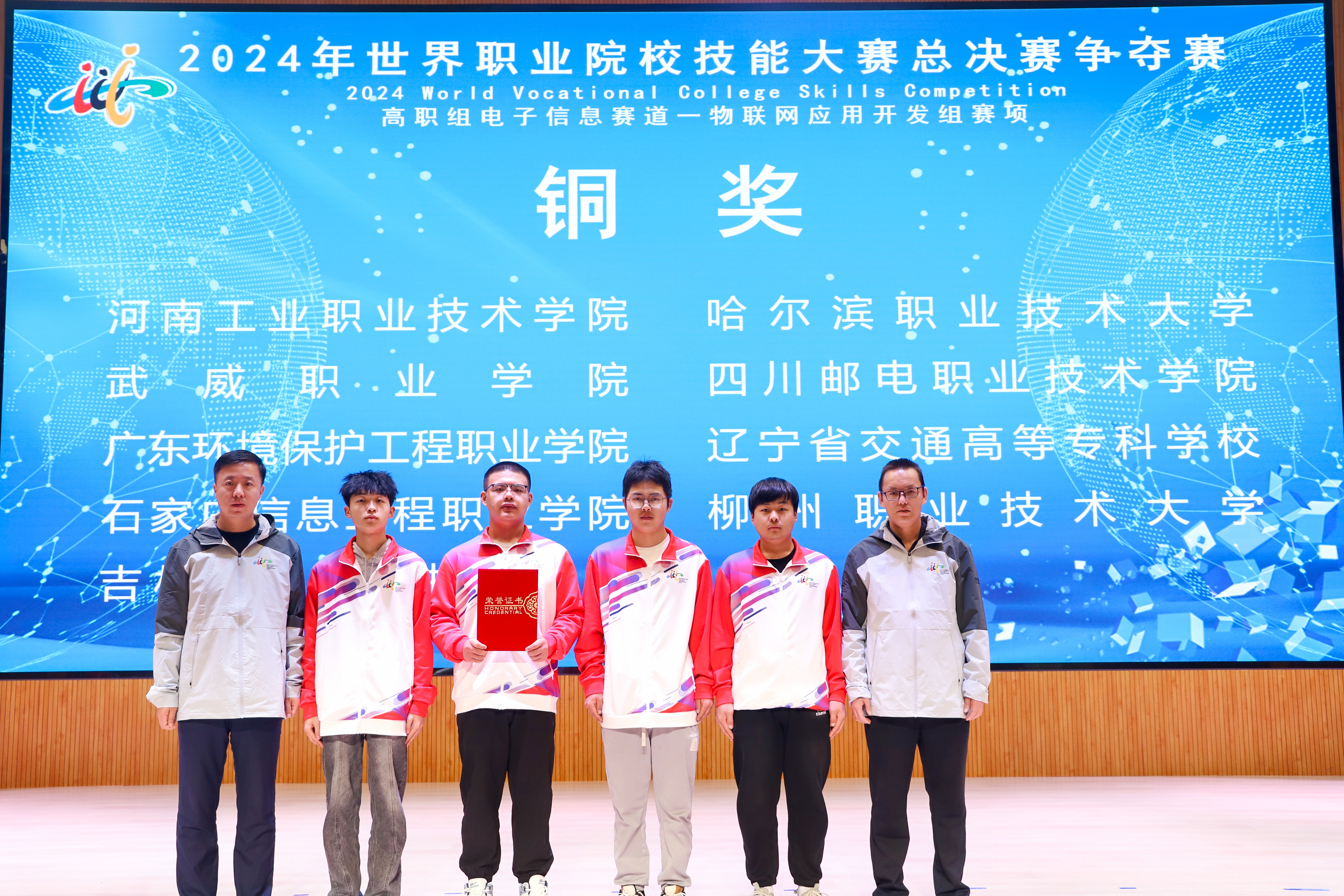 學(xué)校在2024年世界職業(yè)院校技能大賽爭奪賽高職組電子信息賽道物聯(lián)網(wǎng)應(yīng)用開發(fā)賽項(xiàng)中榮獲銅獎