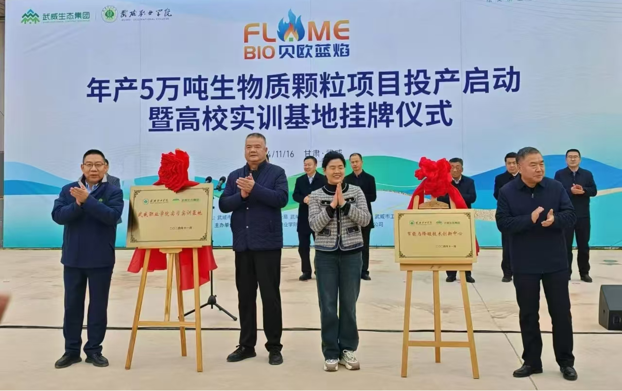 11月16日上午,由武威生態(tài)集團(tuán)和學(xué)校主辦,武威林草科技開發(fā)有限公司承辦的武威生態(tài)集團(tuán)年產(chǎn)5萬噸生物質(zhì)顆粒項目投產(chǎn)啟動暨高校實(shí)訓(xùn)基地掛牌儀式在武威進(jìn)境木材指定監(jiān)管場地舉行。學(xué)校黨委委員、副校長王守云出席儀式并致辭。
