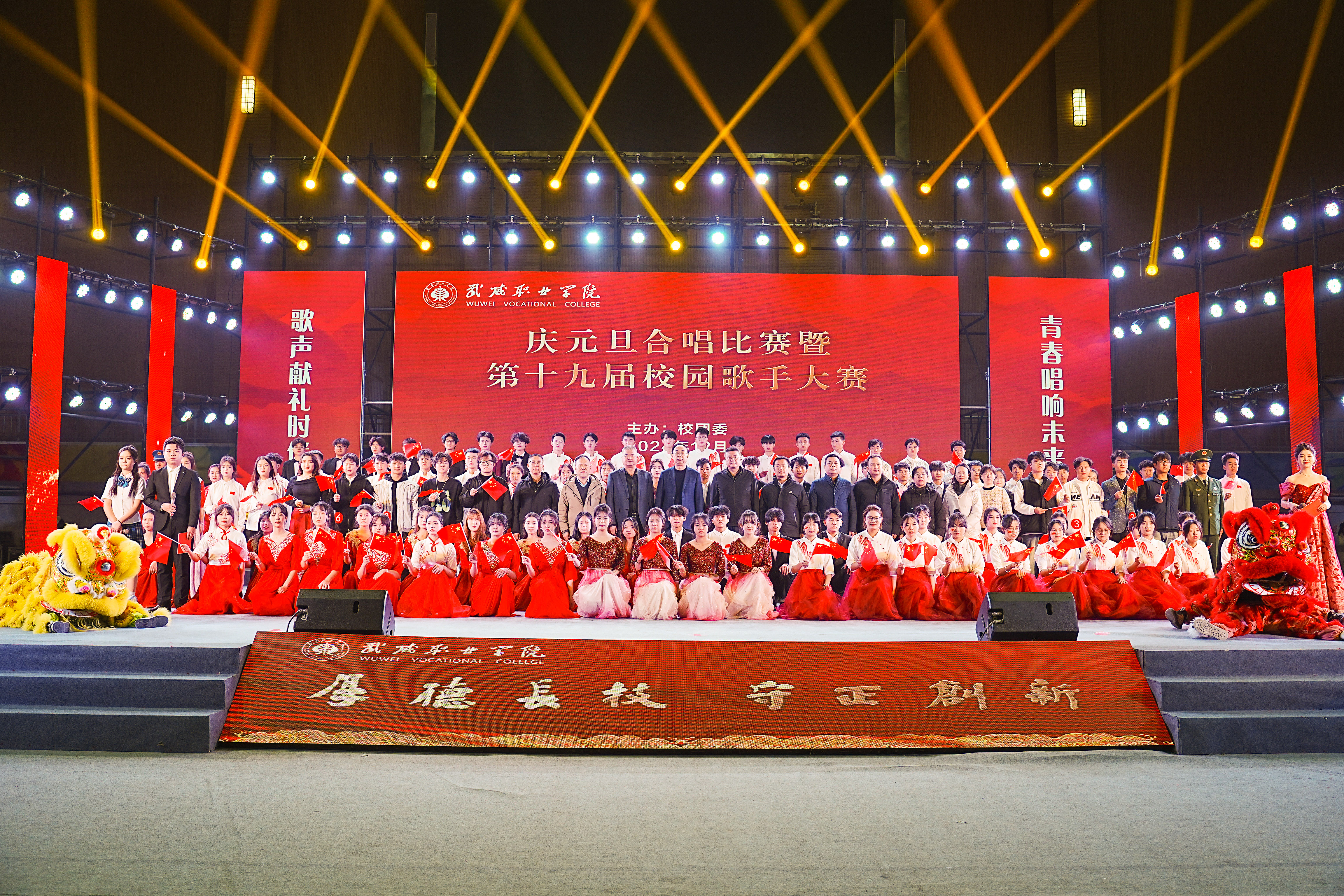 歌聲獻(xiàn)禮時代,青春唱響未來。12月26日晚,學(xué)?!皯c元旦”合唱比賽暨第十九屆校園歌手大賽在體育館成功舉辦。學(xué)校黨委書記王宏出席活動并為獲獎集體和個人頒獎,黨委委員、副校長王守云出席活動,各二級學(xué)院和相關(guān)部門負(fù)責(zé)人與2000余名師生現(xiàn)場觀看了比賽。