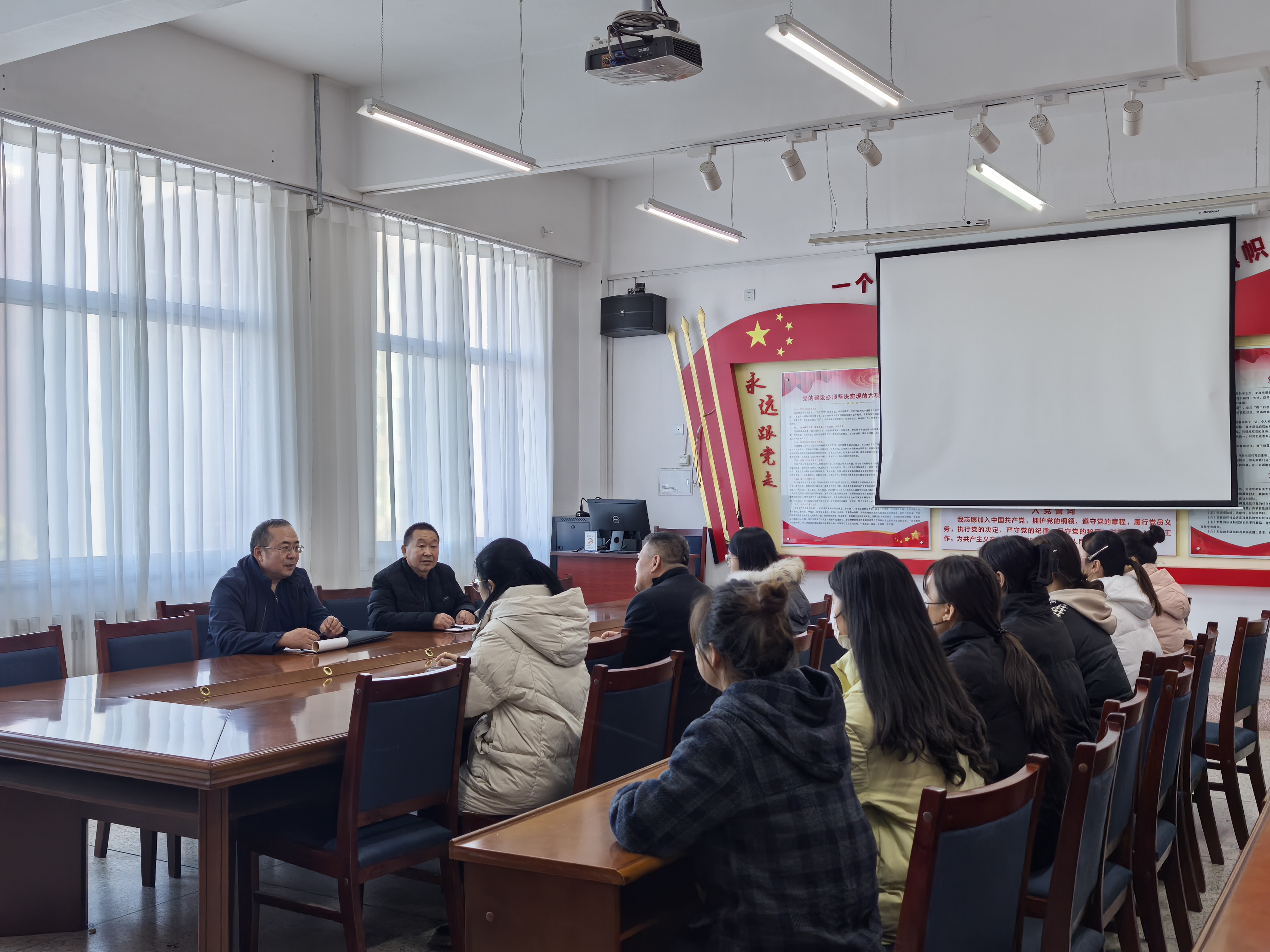 會(huì)后,顧文兵聆聽(tīng)了馬克思主義學(xué)院教師謝發(fā)福講授的《思想道德與法治》課程,并對(duì)班級(jí)學(xué)生進(jìn)行了問(wèn)卷調(diào)查,了解學(xué)生對(duì)思政課的滿(mǎn)意度以及對(duì)教師課堂教學(xué)情況的評(píng)價(jià)和建議。聽(tīng)課結(jié)束后,顧文兵與我校思政課教師進(jìn)行了深入交談,就教學(xué)設(shè)計(jì)、師生互動(dòng)等方面提出寶貴意見(jiàn)。