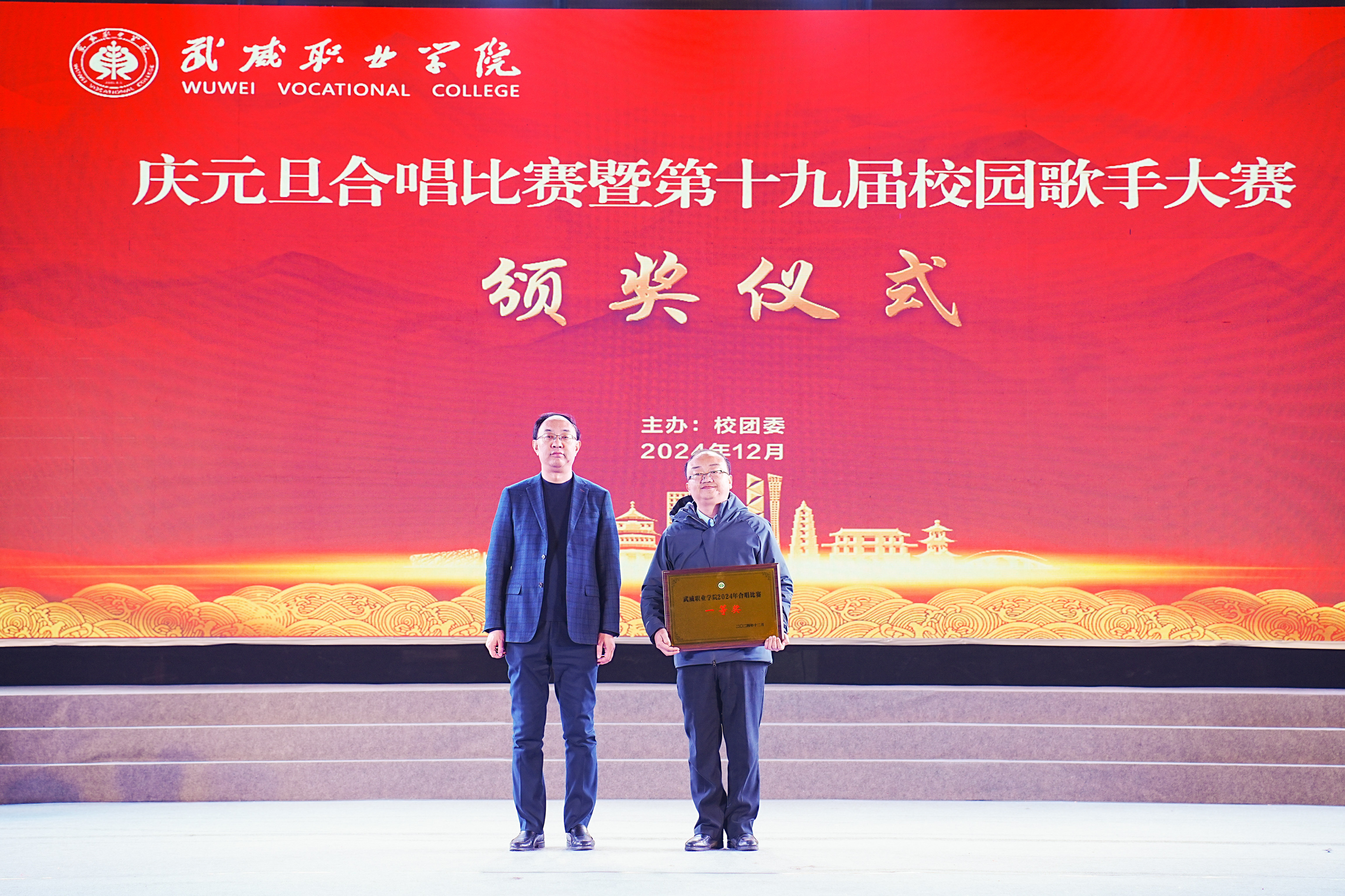 歌聲獻(xiàn)禮時(shí)代,青春唱響未來。12月26日晚,學(xué)?!皯c元旦”合唱比賽暨第十九屆校園歌手大賽在體育館成功舉辦。學(xué)校黨委書記王宏出席活動(dòng)并為獲獎(jiǎng)集體和個(gè)人頒獎(jiǎng),黨委委員、副校長王守云出席活動(dòng),各二級(jí)學(xué)院和相關(guān)部門負(fù)責(zé)人與2000余名師生現(xiàn)場觀看了比賽。