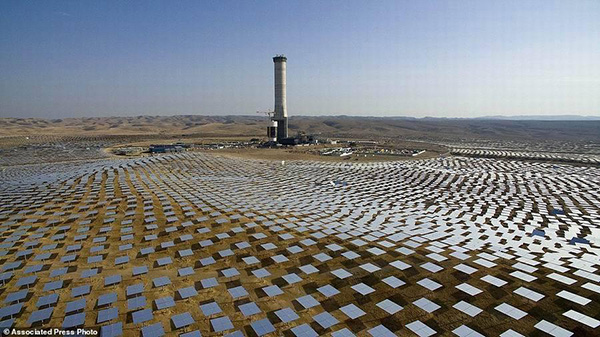 以色列內(nèi)蓋夫沙漠上5萬(wàn)個(gè)日光反射鏡面環(huán)繞一座太陽(yáng)能塔,該太陽(yáng)能塔高度為250米。目前,在以色列晴朗天氣,太陽(yáng)能利用率非常低,未來(lái)這項(xiàng)以色列最大的再生能源項(xiàng)目將具有較好的應(yīng)用前景,預(yù)計(jì)2018年建造完成。