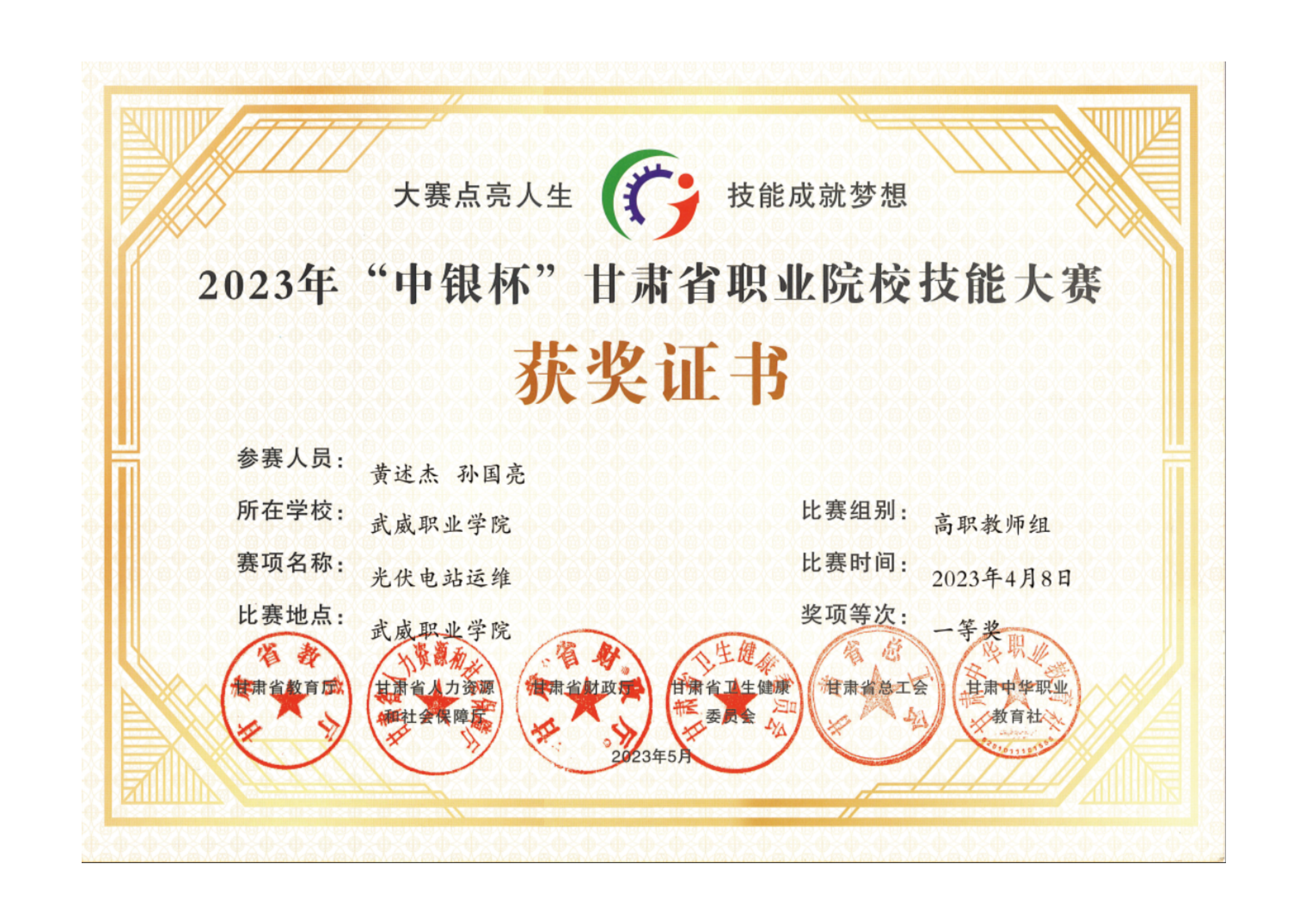 2023年甘肅省職業(yè)院校技能大賽光伏電站運(yùn)維賽項(xiàng)(高職教師組)獲獎(jiǎng)情況