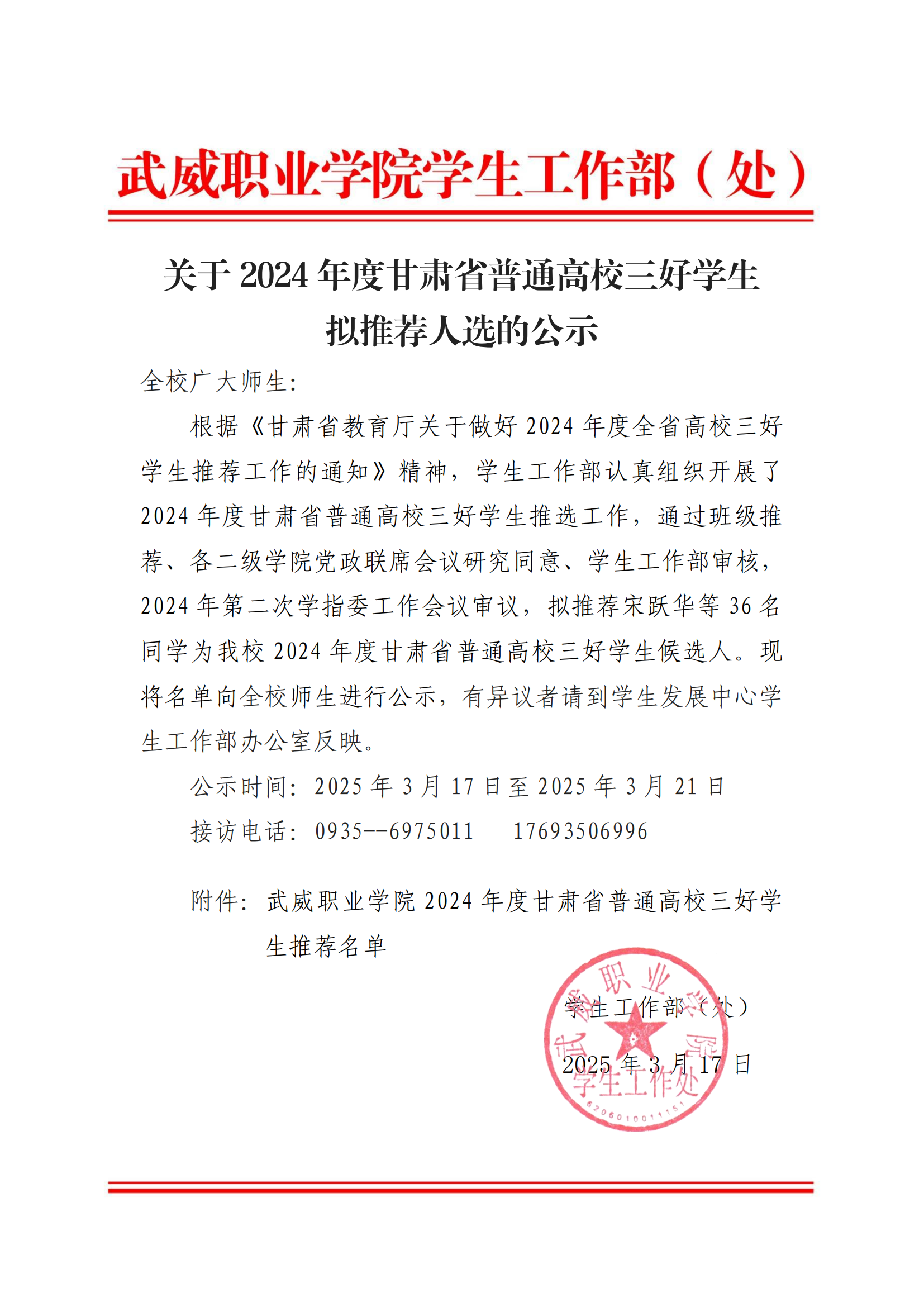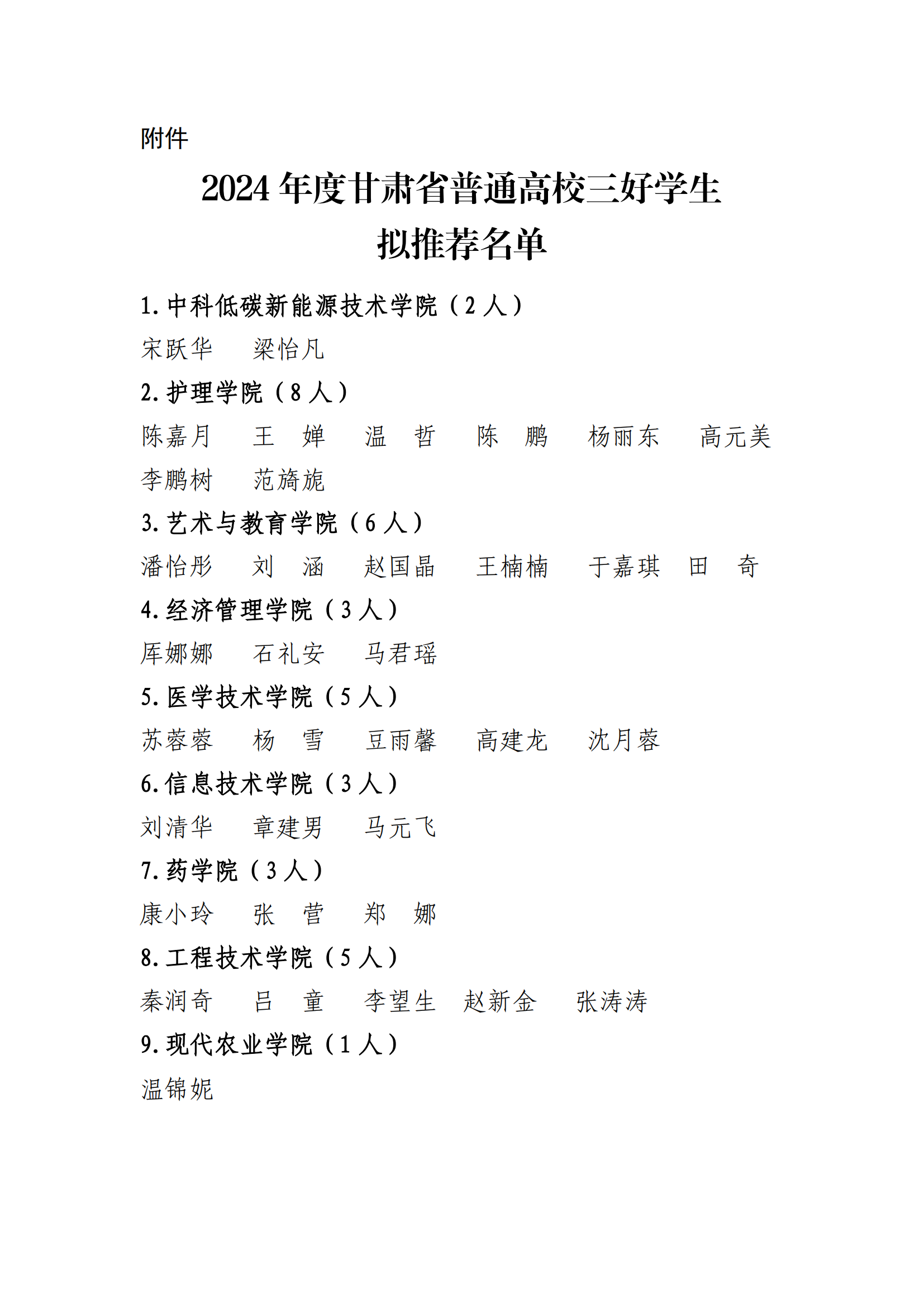 關(guān)于2024年度甘肅省普通高校三好學生擬推薦人選的公示