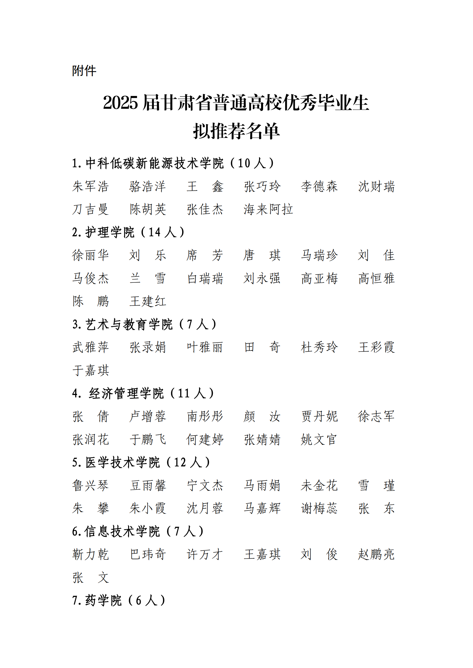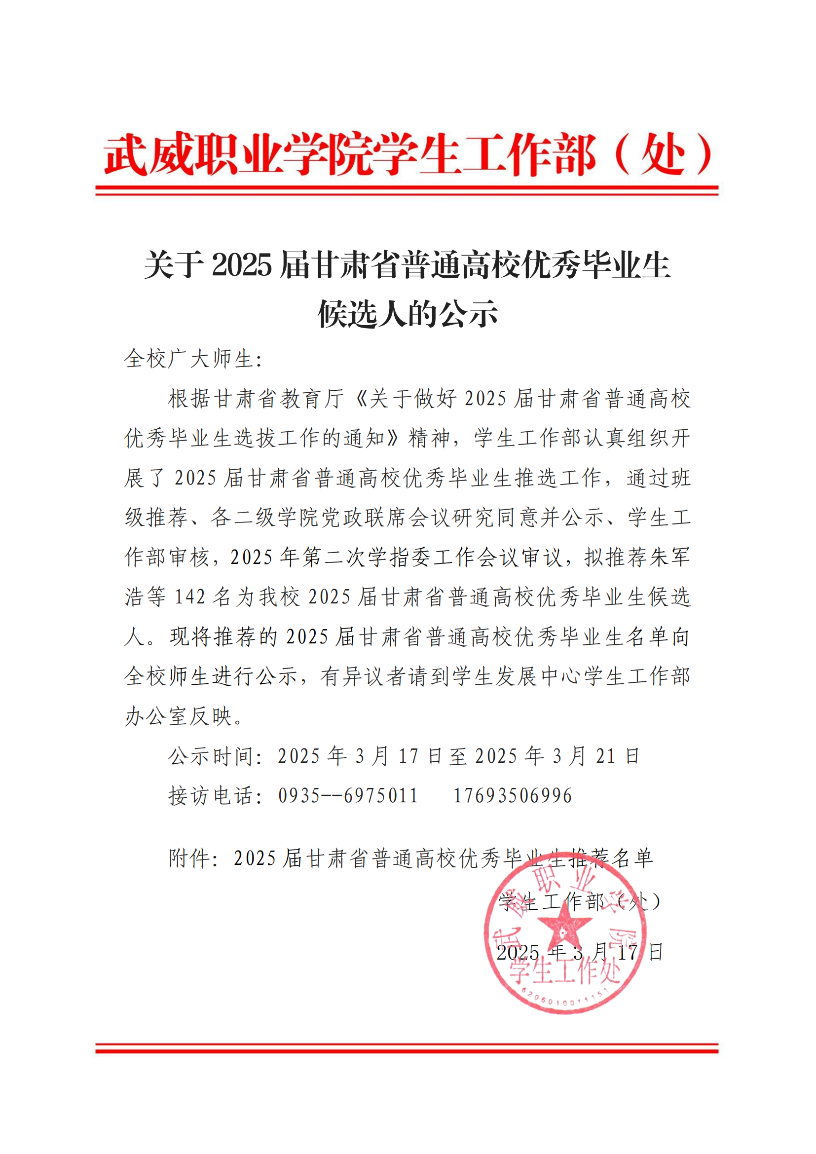 關于2025屆武威職業(yè)學院優(yōu)秀畢業(yè)生候選人的公示