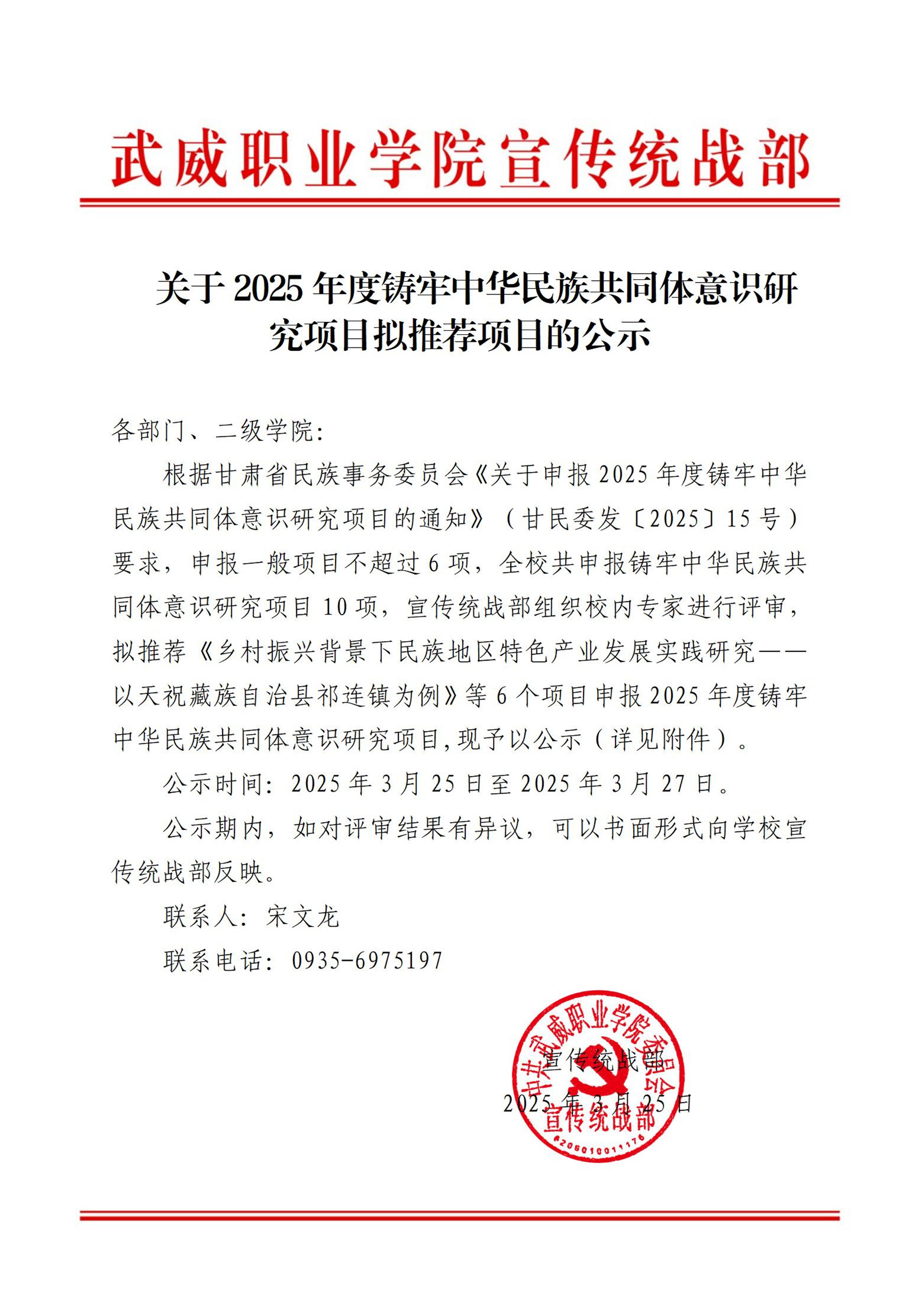 關(guān)于2025年鑄牢中華民族共同體意識宣傳教育專項(xiàng)研究課題擬推薦項(xiàng)目的公示