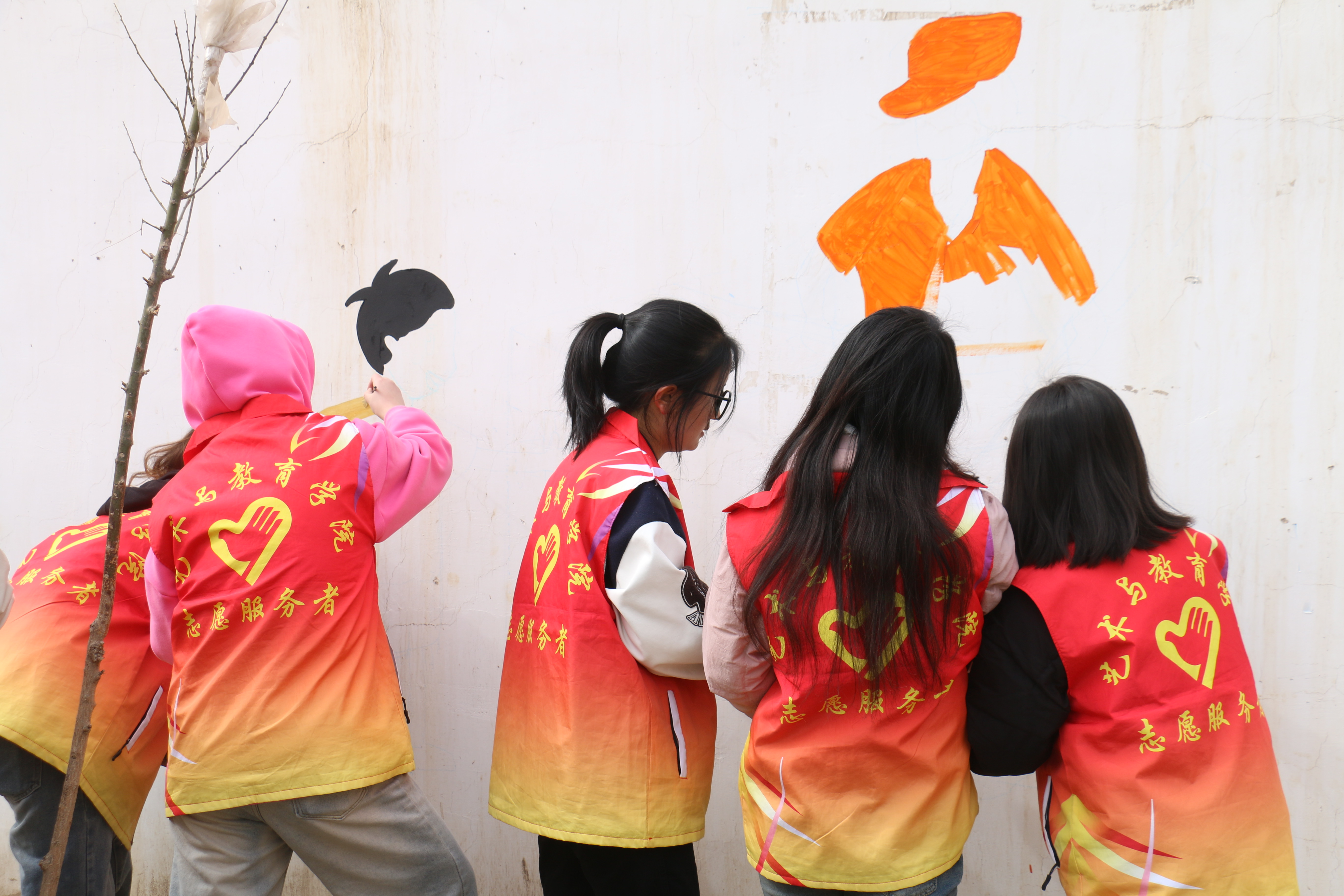 在涼州區(qū)富鑫源社區(qū),學(xué)前教育專業(yè)20余名學(xué)生化身“社區(qū)美育師”,與甘肅十二元素傳媒有限公司設(shè)計(jì)師共同完成了“鄰里和諧”主題墻繪。學(xué)生通過墻繪師的專業(yè)輔導(dǎo),結(jié)合幼兒教育知識(shí)設(shè)計(jì)卡通圖案,將廢棄墻面變?yōu)椤皶?huì)講故事”的文化長(zhǎng)廊。23級(jí)數(shù)字媒體班王格爾桑表示:從主題設(shè)計(jì)到落地實(shí)踐,我感受到藝術(shù)教育需要溫度和共情。