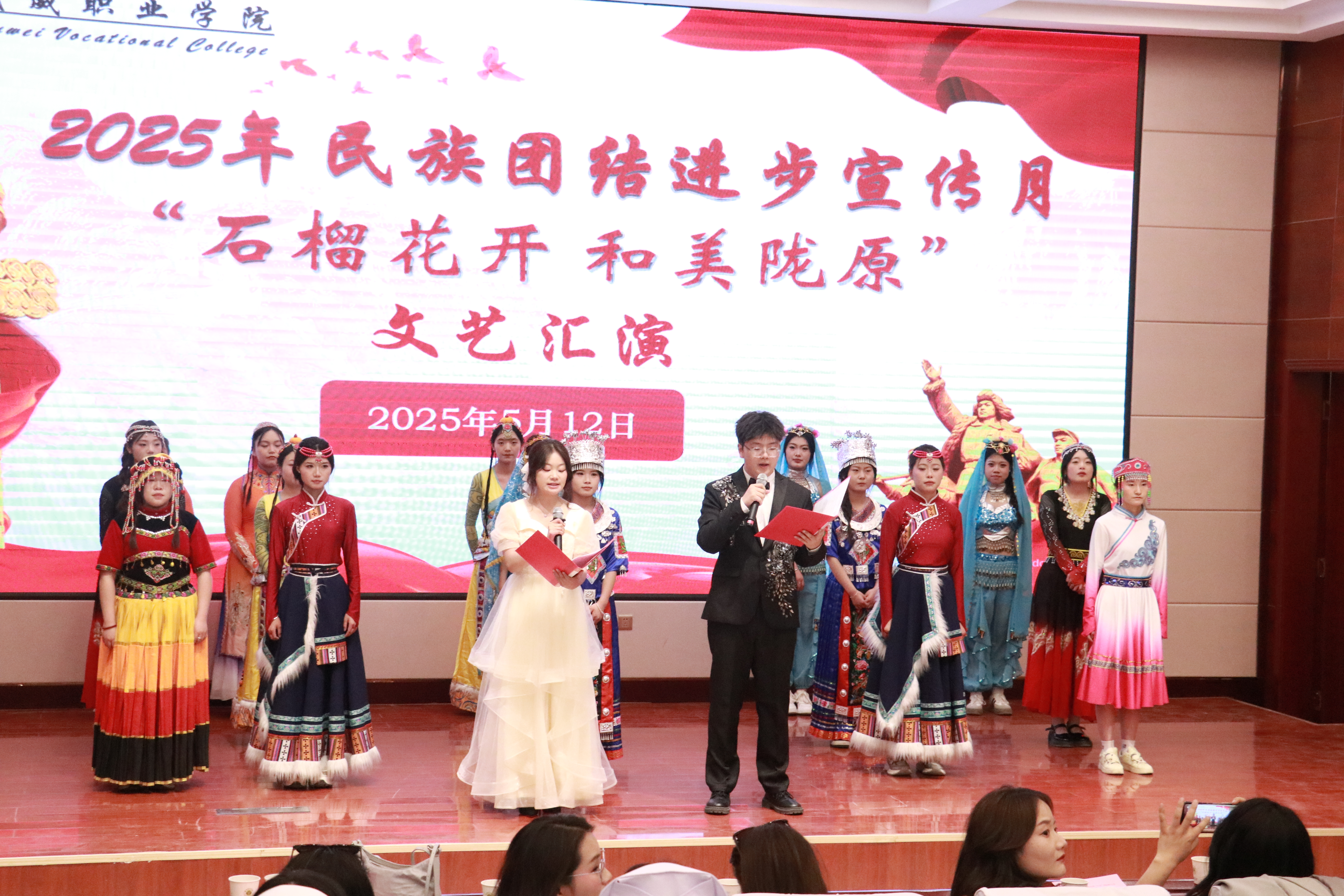 為深入貫徹落實(shí)黨的二十大精神,深化民族團(tuán)結(jié)進(jìn)步教育,鑄牢中華民族共同體意識(shí),5月12日,護(hù)理學(xué)院在學(xué)校菁英廳舉行2025年民族團(tuán)結(jié)進(jìn)步宣傳月“石榴花開(kāi),和美隴原”主題文藝匯演。學(xué)院黨總支書記黃文源、全體教職工和學(xué)生代表共200余人參加。