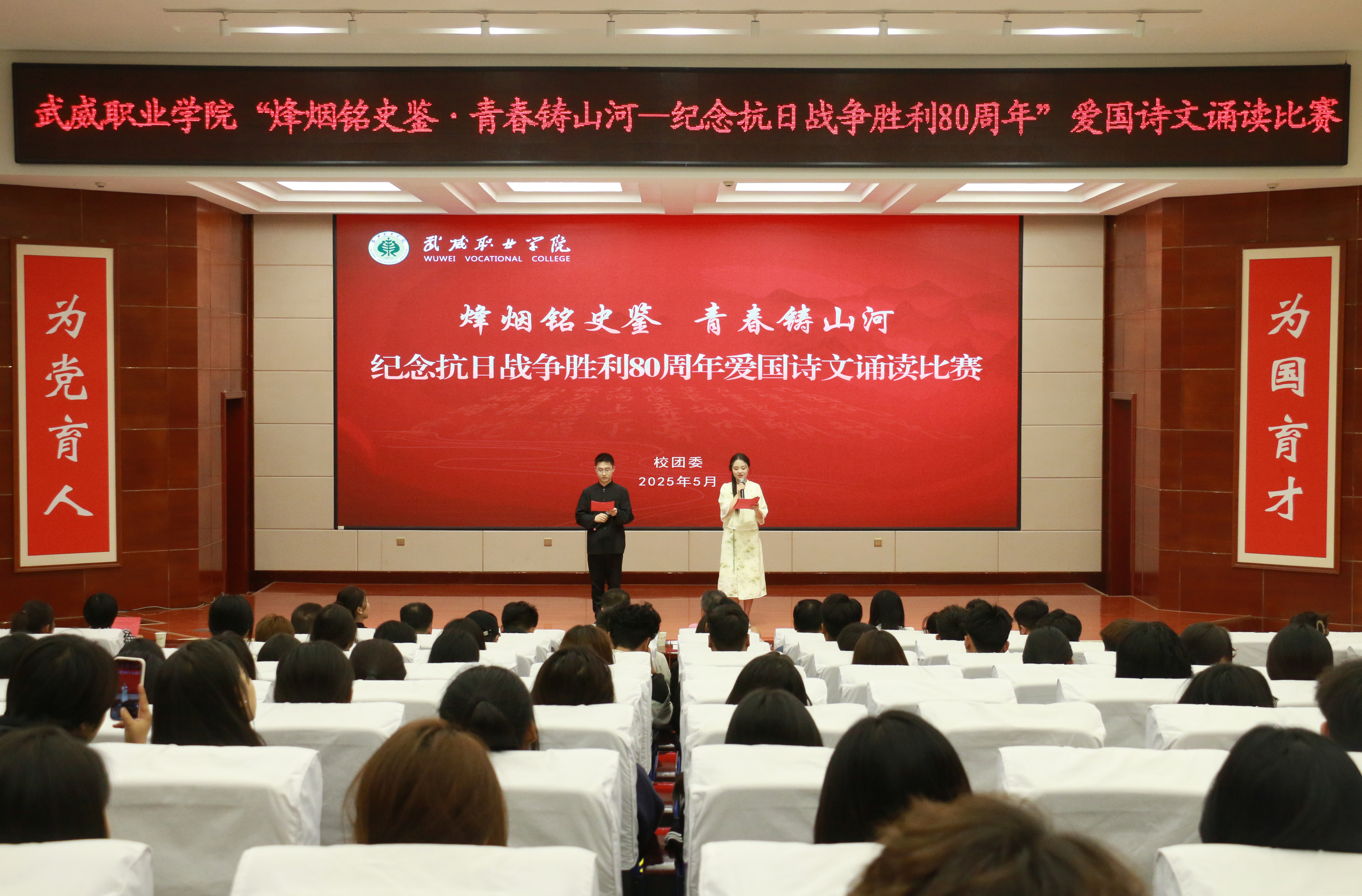 詩韻傳薪火,青春頌山河。5月22日晚,學(xué)?!胺闊熴懯疯b青春鑄山河—紀(jì)念中國人民抗日戰(zhàn)爭勝利80周年”愛國詩文誦讀比賽在菁英廳舉行。學(xué)校黨委委員、副校長何毅出席活動。二級學(xué)院團(tuán)委書記及學(xué)生代表200余人觀看比賽。