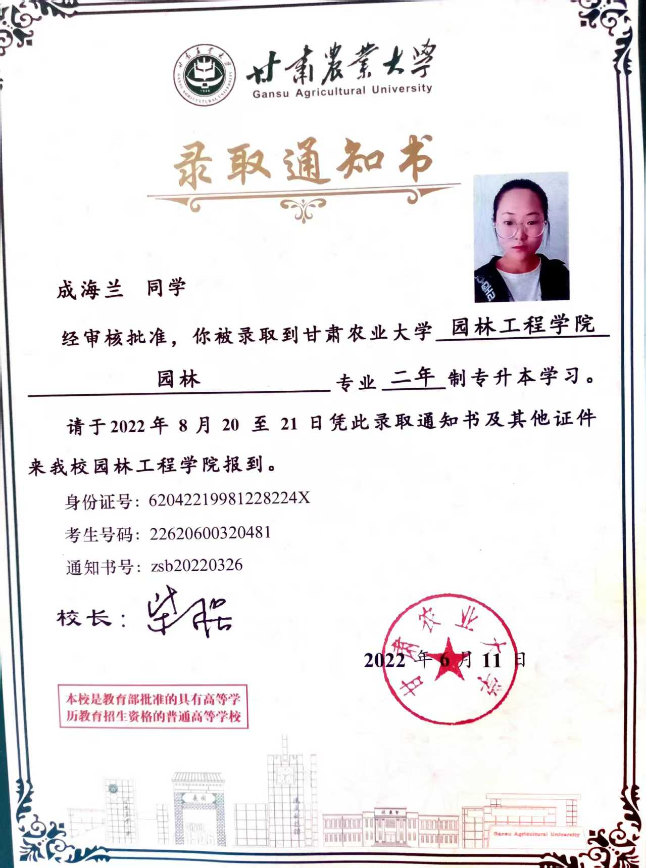 畢業(yè)感言:畢業(yè)幾年,母校的教誨始終銘記于心。感謝武威職業(yè)學(xué)院給予我的知識(shí)與力量,讓我在農(nóng)業(yè)領(lǐng)域能不斷前行,未來我也將繼續(xù)努力,為行業(yè)發(fā)展貢獻(xiàn)更多力量。