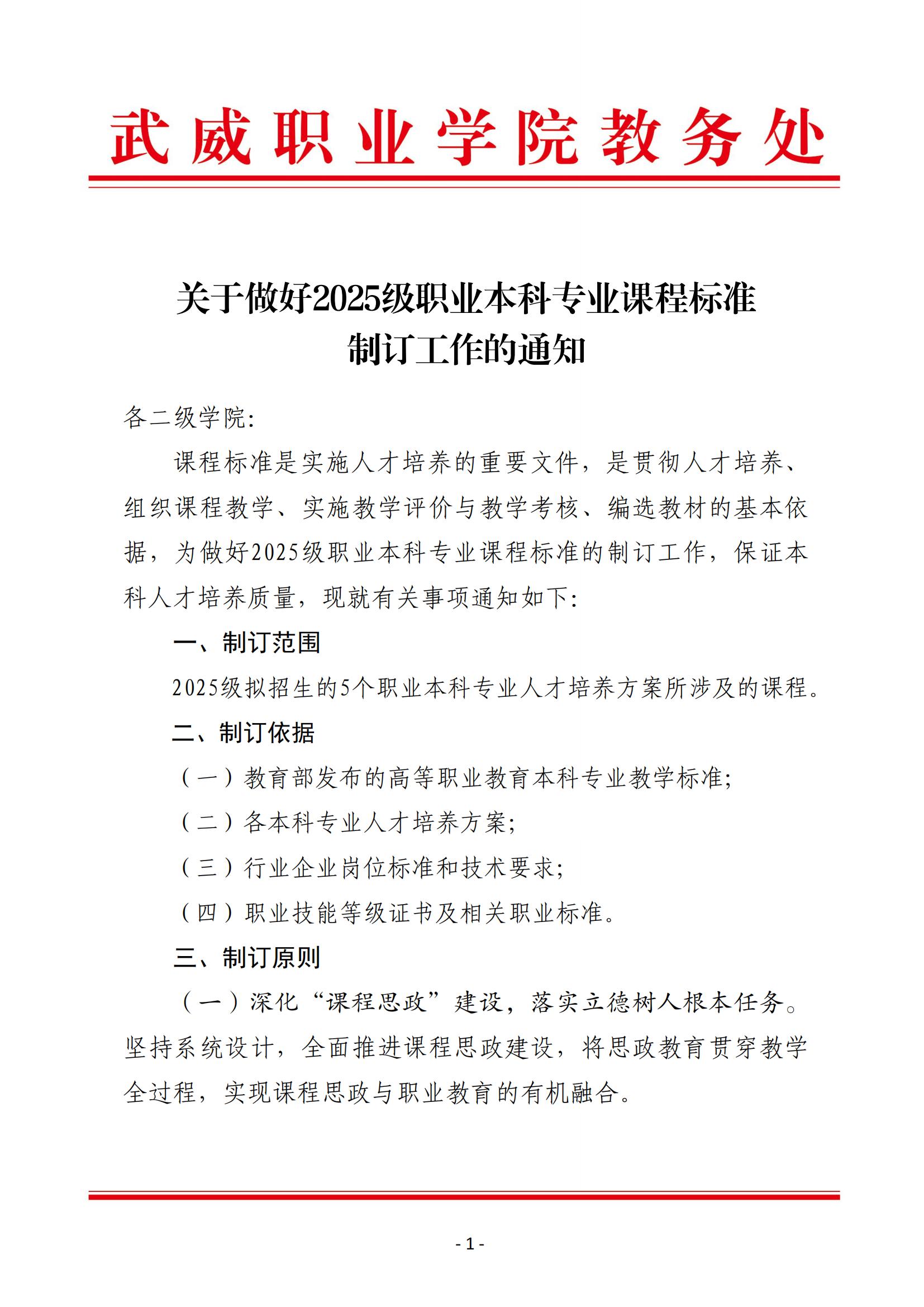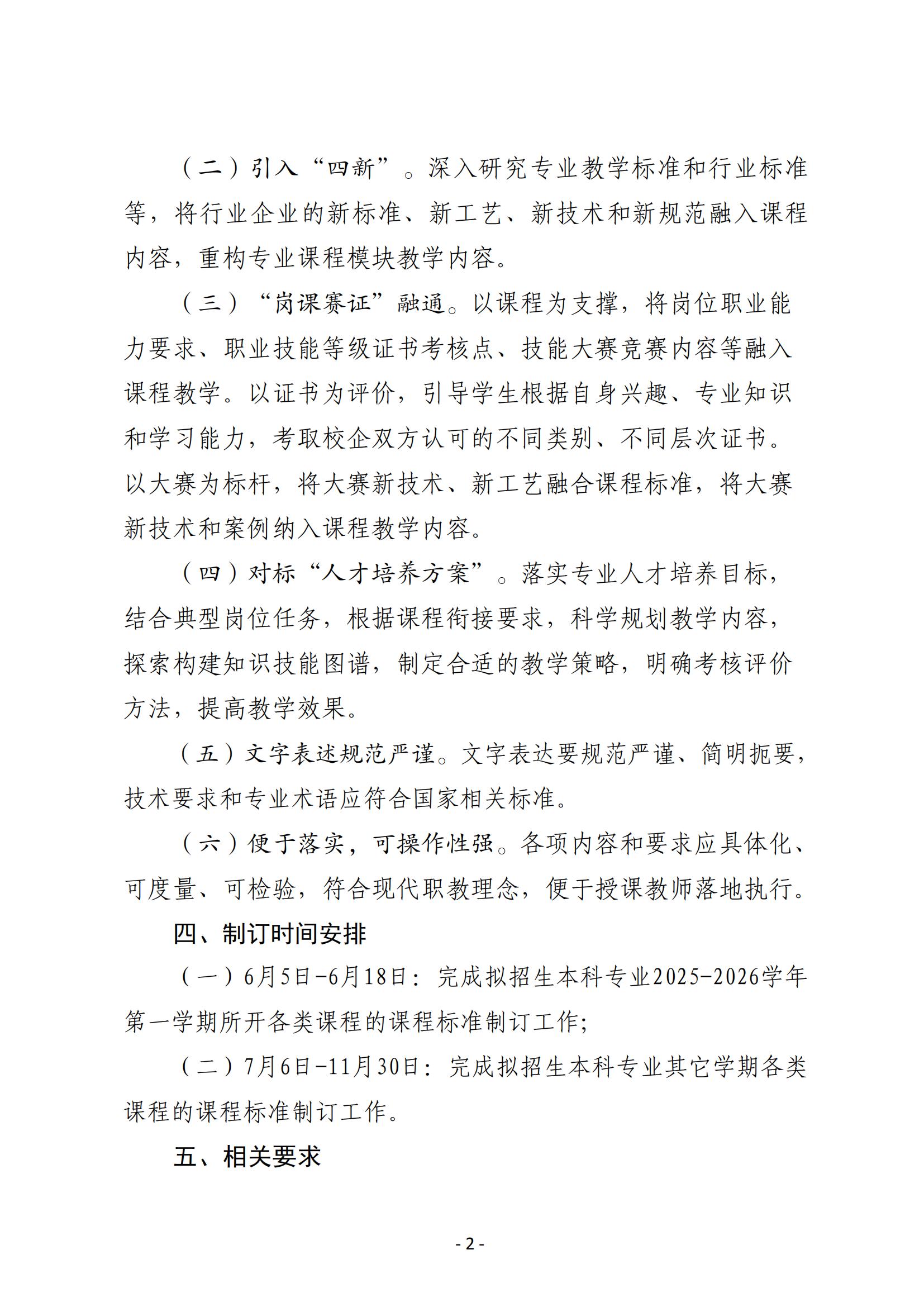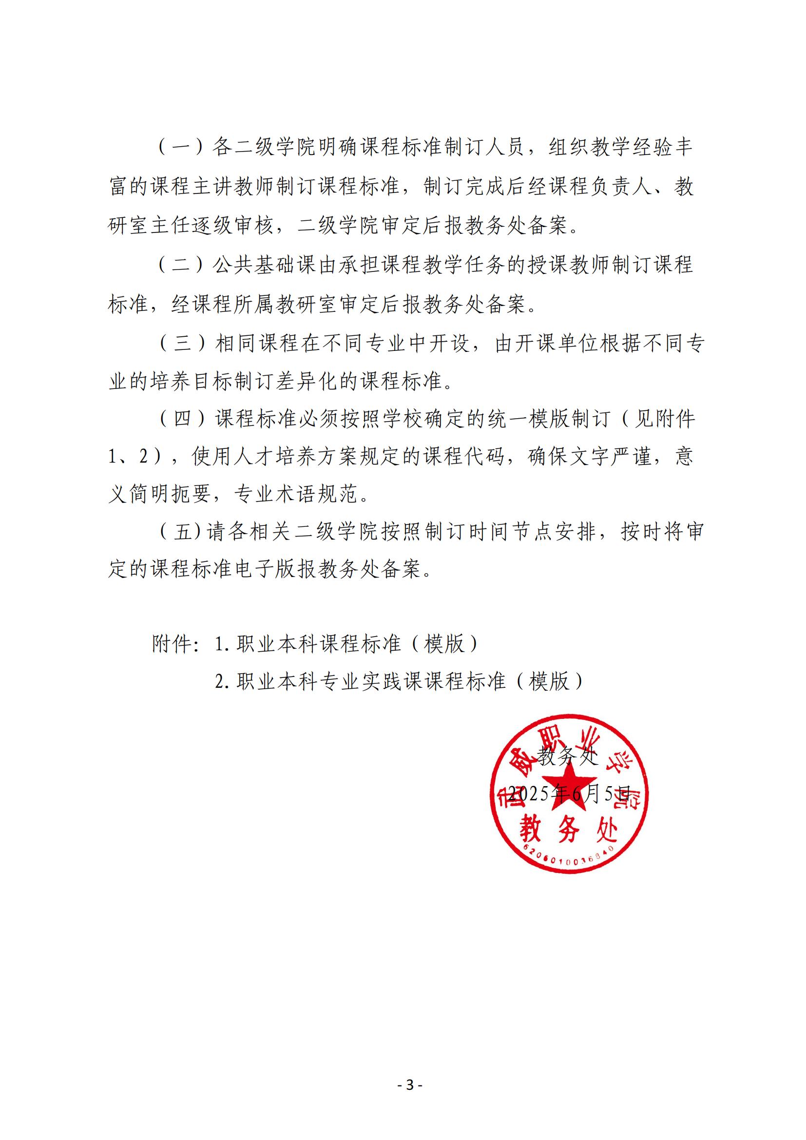 關于做好2025級職業(yè)本科專業(yè)課程標準制訂工作的通知