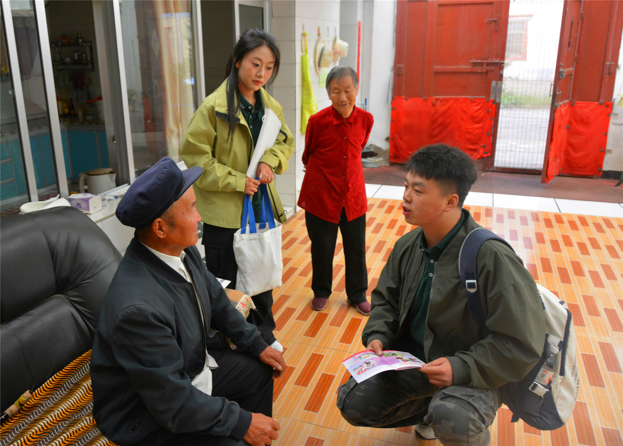 志愿者們穿梭于村巷院落,他們與村民圍坐炕頭、庭院,用溫暖的笑容和真誠的言語,了解村民生產生活、子女教育現(xiàn)狀以及對普通話學習的真實想法與需求。