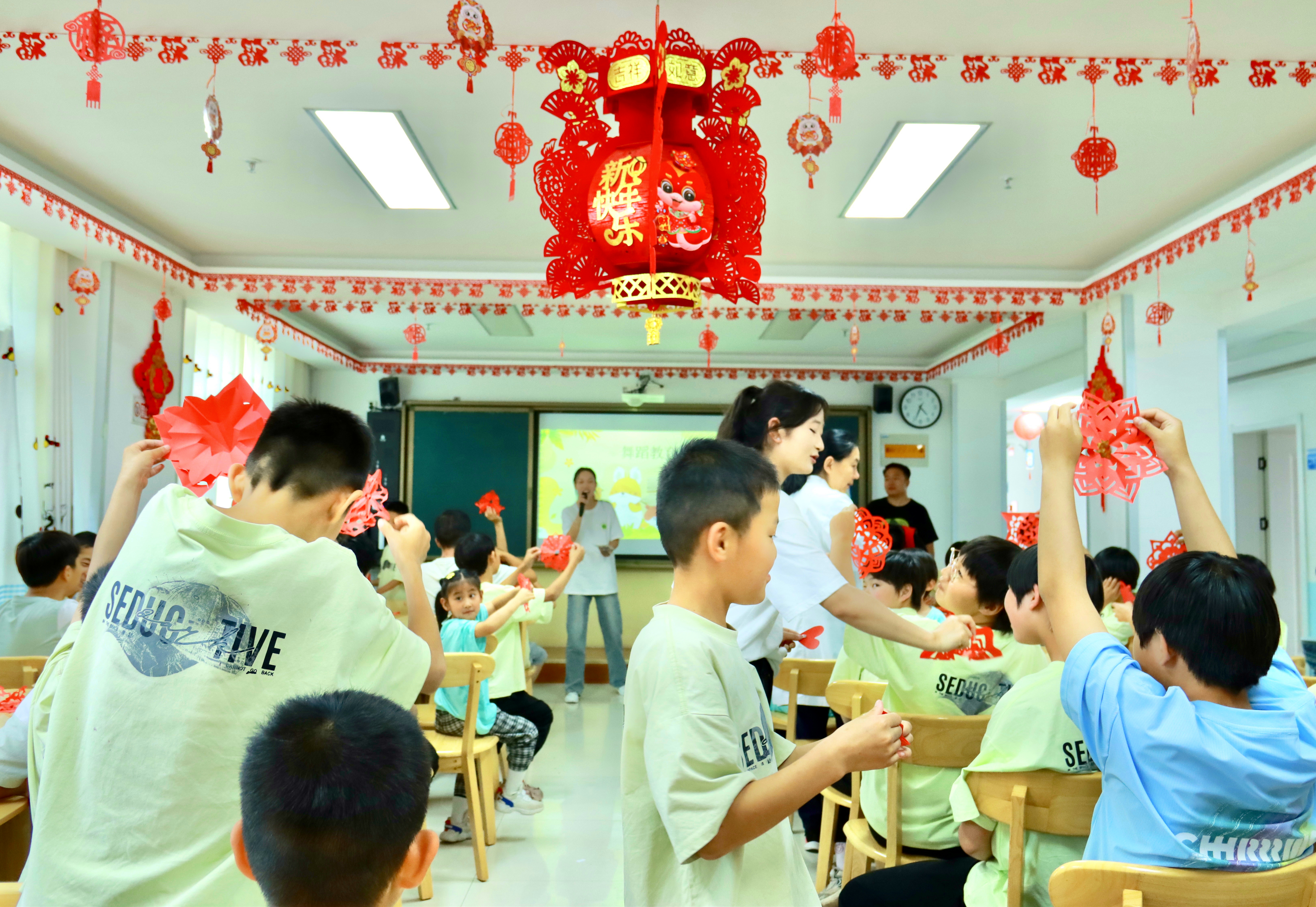 走進福利院,志愿者與小朋友們暖心互動,剪紙課上,彩紙在指尖翻飛,剪出的圖案化作聲聲祝福,在培養(yǎng)孩子們的動手實踐能力的同時,更在美感體驗中將非遺傳承的種子種在心里,開出燦爛的花。手拍鼓前,節(jié)奏與歡笑交織,隨著鼓點的律動,輕快的旋律敲出滿室溫馨。就連平日里略顯枯燥的科普小知識,也被志愿者們講成了一個個“溫暖故事”?;顒幼詈?,志愿者們拿出提前準備好的小禮物分發(fā)給每個孩子,收到禮物的孩子們露出了燦爛的笑容,這份溫暖在彼此心間久久回蕩。