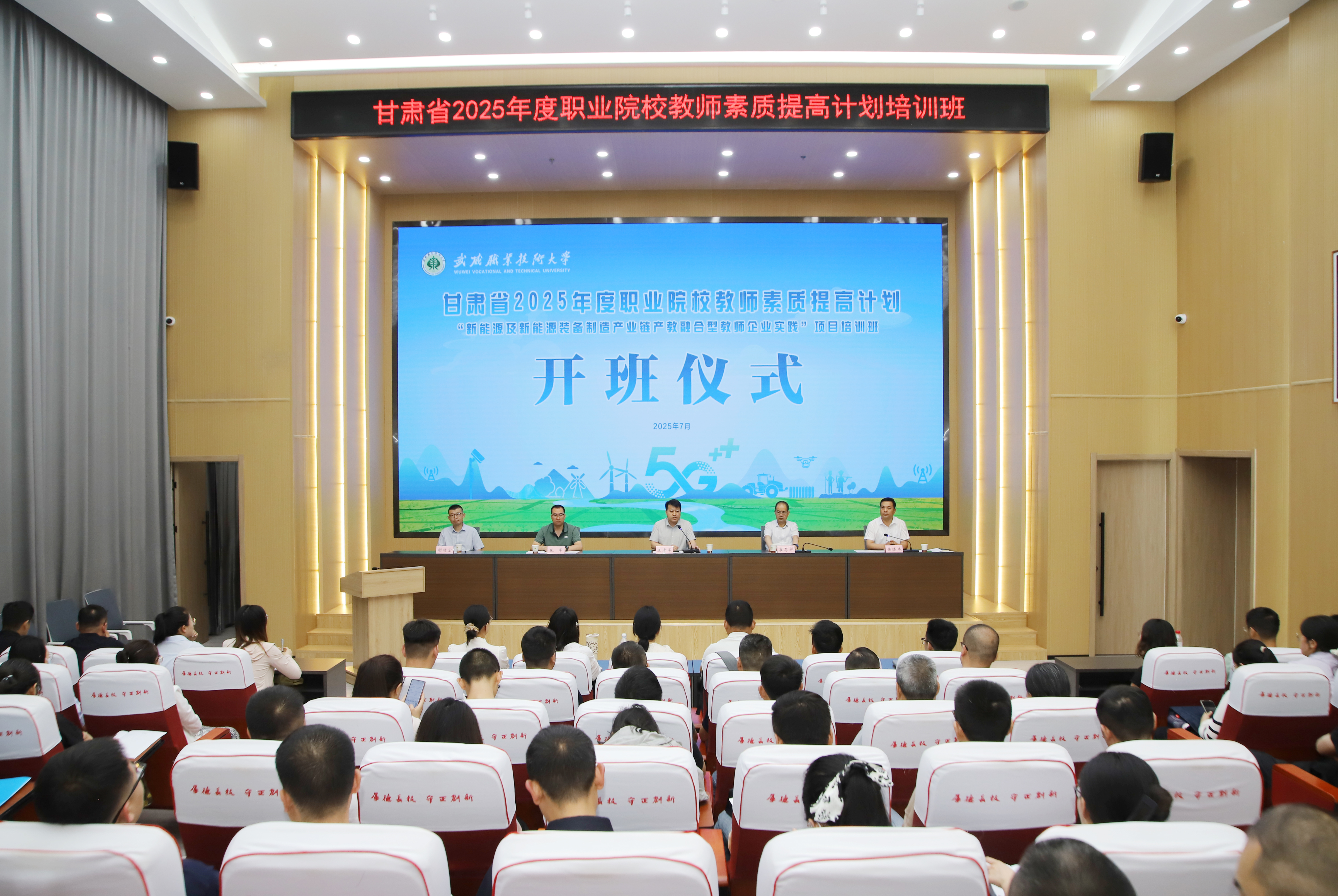 7月21日,由甘肅省教育廳主辦,武威職業(yè)技術(shù)大學(xué)首次承辦的甘肅省2025年度職業(yè)院校教師素質(zhì)提高計(jì)劃“新能源及新能源裝備制造產(chǎn)業(yè)鏈產(chǎn)教融合型教師企業(yè)實(shí)踐”項(xiàng)目培訓(xùn)班在學(xué)校順利開(kāi)班,培訓(xùn)旨在提升教師產(chǎn)教融合、實(shí)踐教學(xué)、技術(shù)創(chuàng)新與服務(wù)的意識(shí)和能力,為甘肅省職業(yè)院校新時(shí)代高素質(zhì)專(zhuān)業(yè)化教師隊(duì)伍建設(shè)提供有力支撐。黨委副書(shū)記翟存祥,甘肅省職業(yè)院校教師素質(zhì)提高計(jì)劃管理辦公室負(fù)責(zé)人及專(zhuān)家出席開(kāi)班儀式,來(lái)自全省16所職業(yè)技術(shù)大學(xué)(學(xué)院)的120名骨干教師參加培訓(xùn)。中科低碳新能源技術(shù)學(xué)院院長(zhǎng)黃述杰主持開(kāi)班儀式。