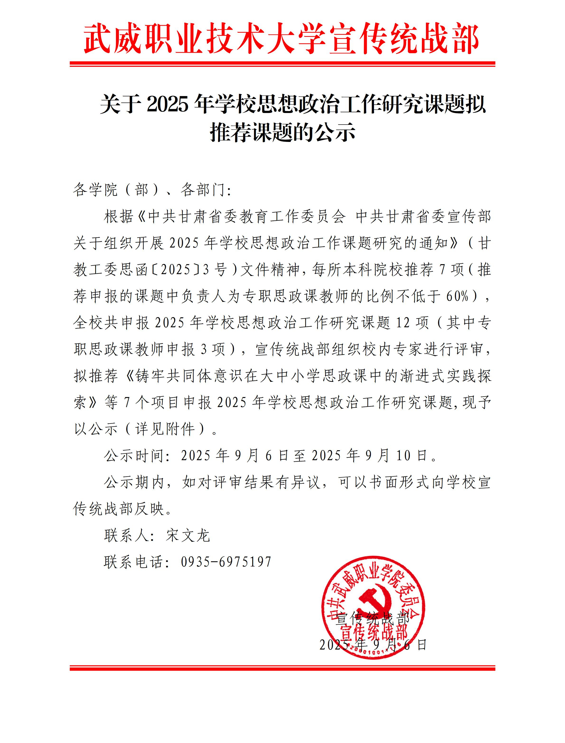 關于2025年學校思想政治工作研究課題擬推薦課題的公示