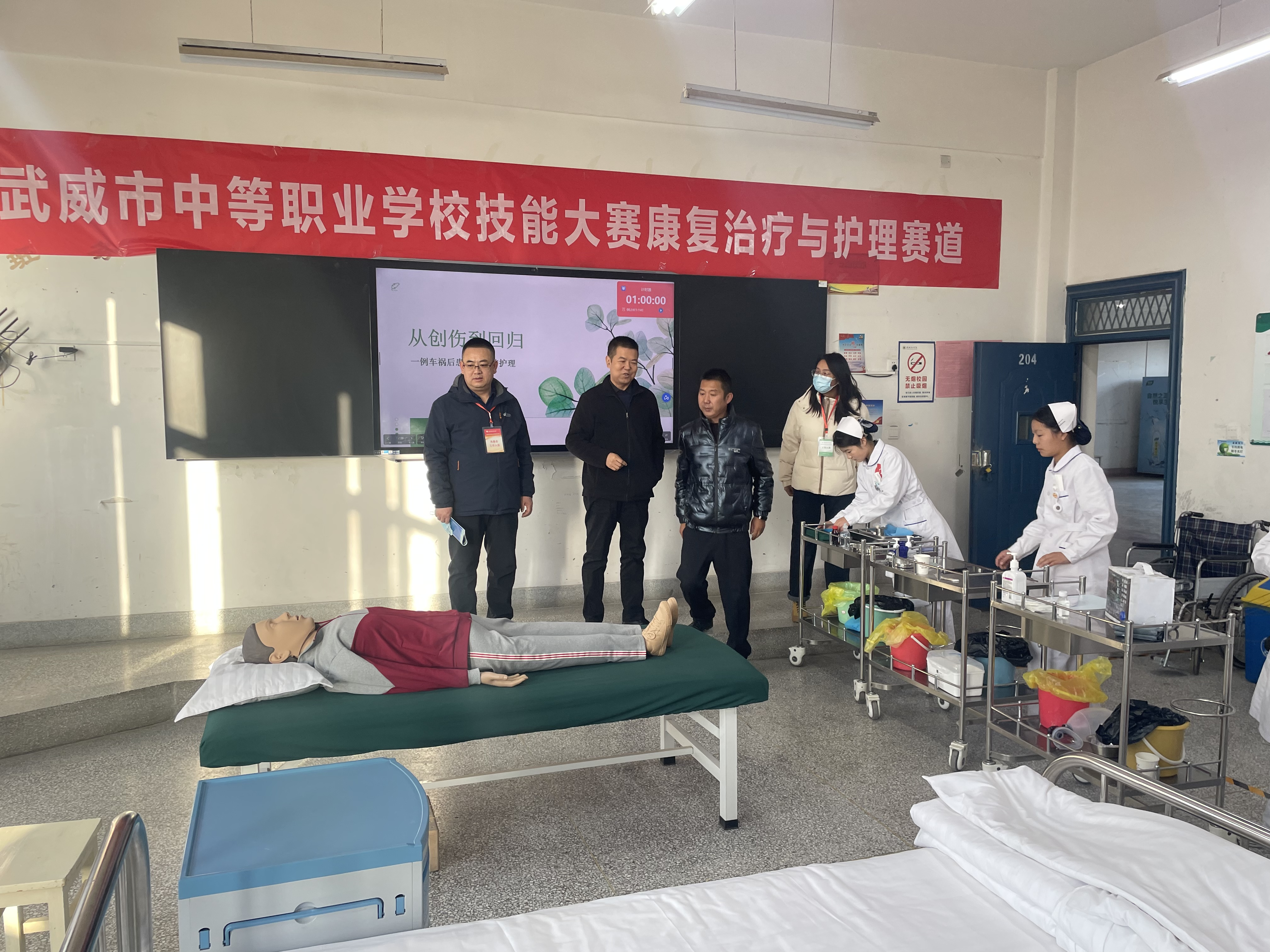 根據(jù)《武威市教育局等五部門關(guān)于印發(fā)2026年武威市中等職業(yè)學(xué)校技能大賽實(shí)施方案》和學(xué)?!蛾P(guān)于開展2026年武威市中等職業(yè)學(xué)校技能大賽》的通知精神,由護(hù)理學(xué)院精心承辦的康復(fù)治療與護(hù)理技能賽道、健康養(yǎng)老與嬰幼兒托育賽道賽事順利舉行。來(lái)自武威市各中等職業(yè)學(xué)校的82支參賽隊(duì)伍300余名選手齊聚賽場(chǎng),展開了一場(chǎng)專業(yè)技能的巔峰對(duì)決。