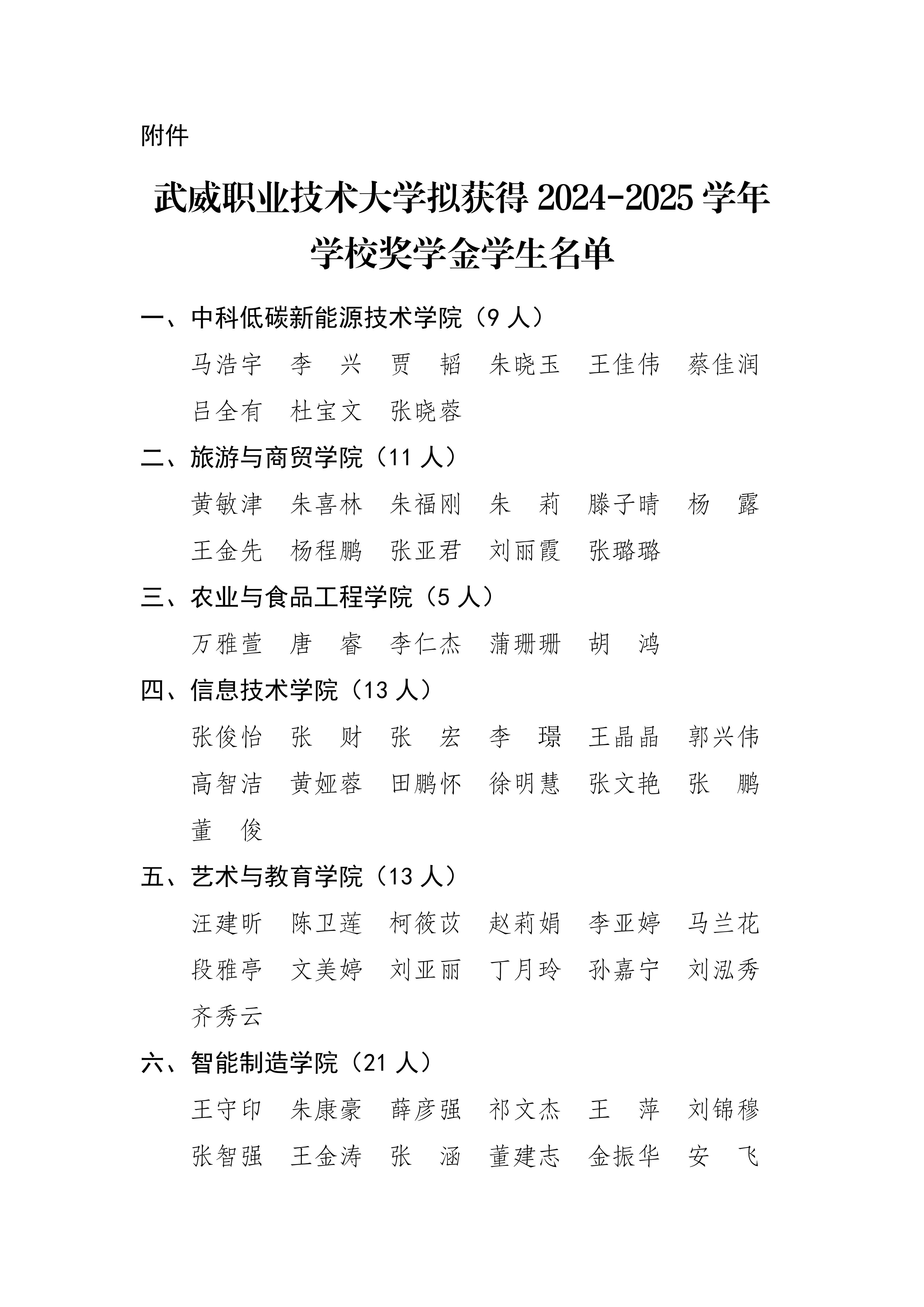 武威職業(yè)技術(shù)大學關(guān)于2024-2025學年學校獎學金評選結(jié)果的公示