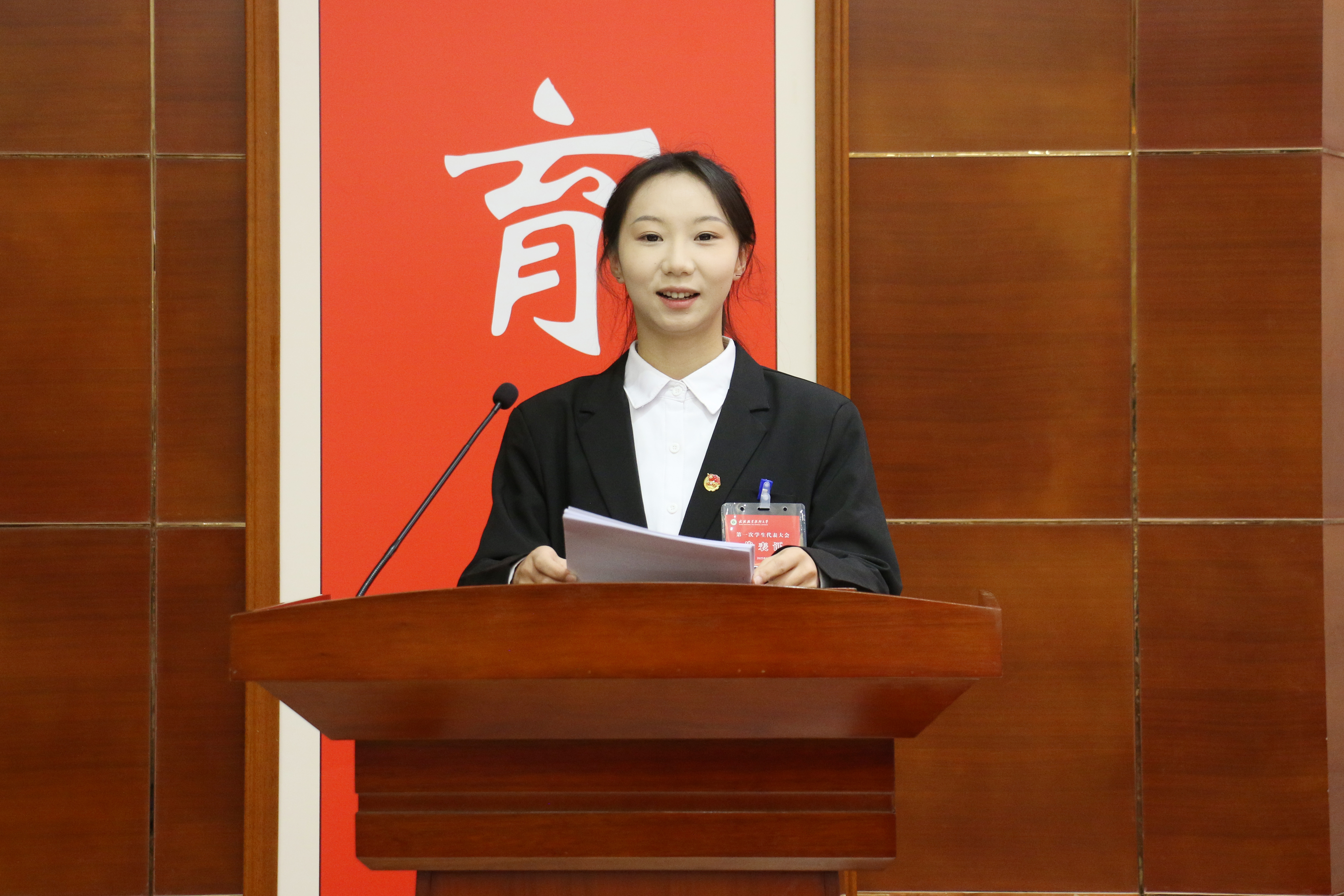 學(xué)校學(xué)生會主席團成員李悅同學(xué)代表第十一屆學(xué)生會委員會向大會作題為《奮楫篤行啟新程 挺膺擔(dān)當(dāng)筑夢行,團結(jié)帶領(lǐng)廣大同學(xué)在建設(shè)特色鮮明的高水平職業(yè)技術(shù)大學(xué)中貢獻青春力量》的工作報告。